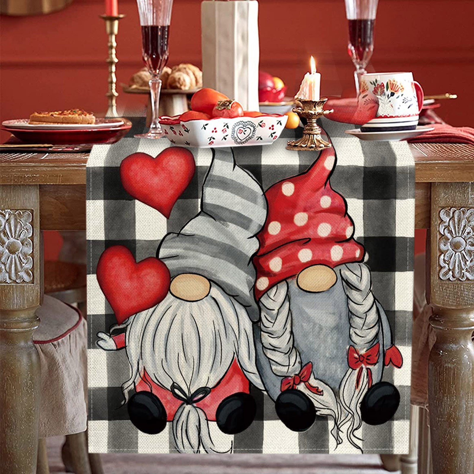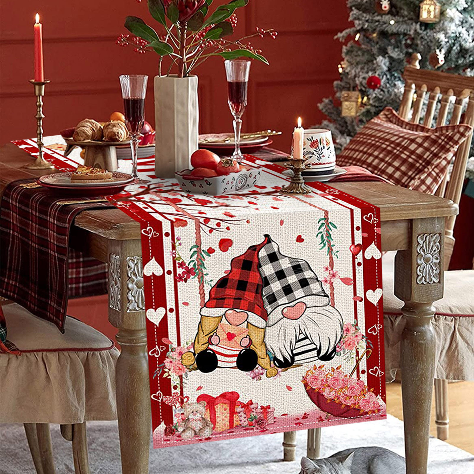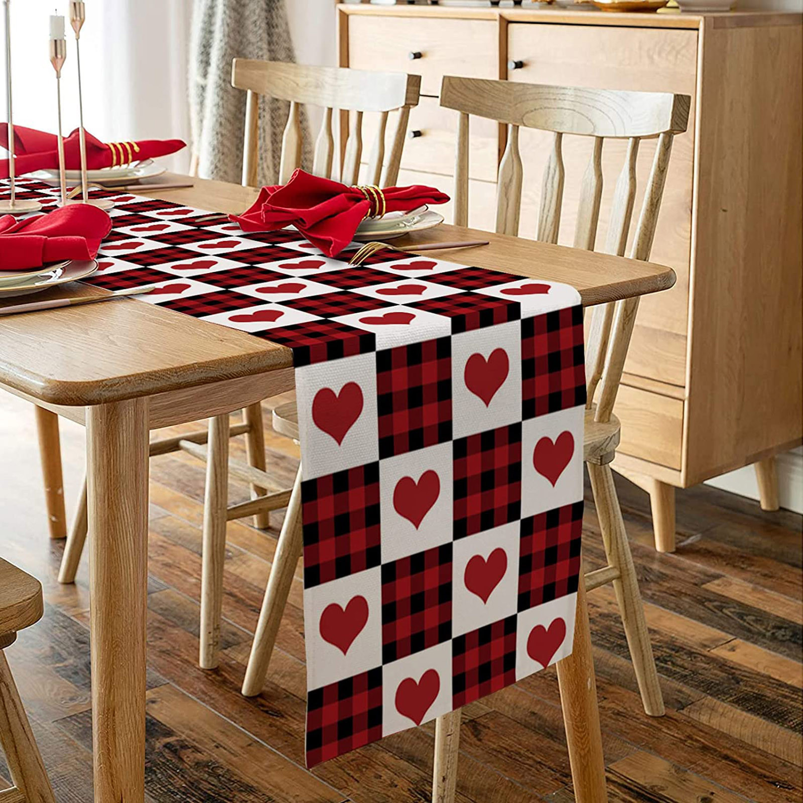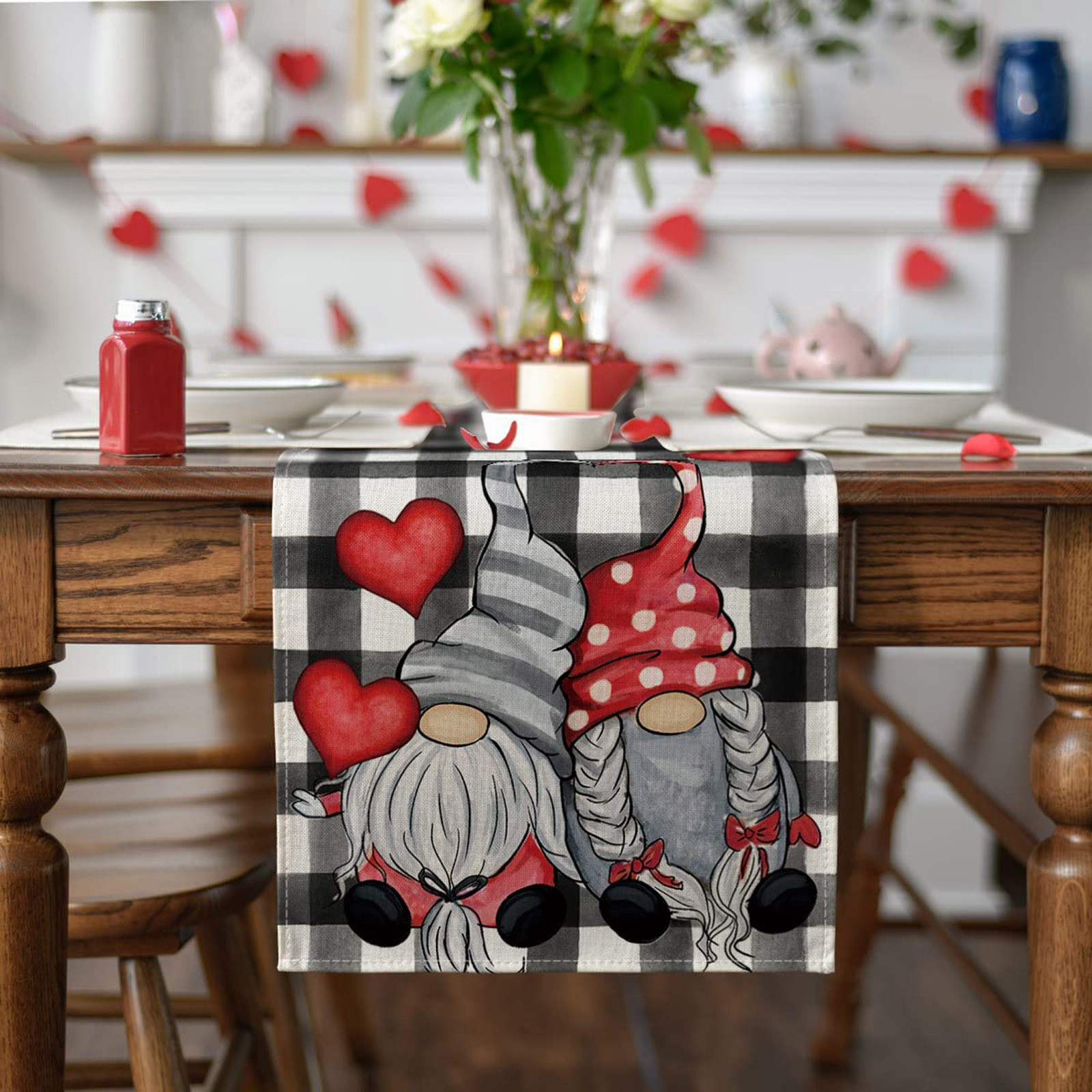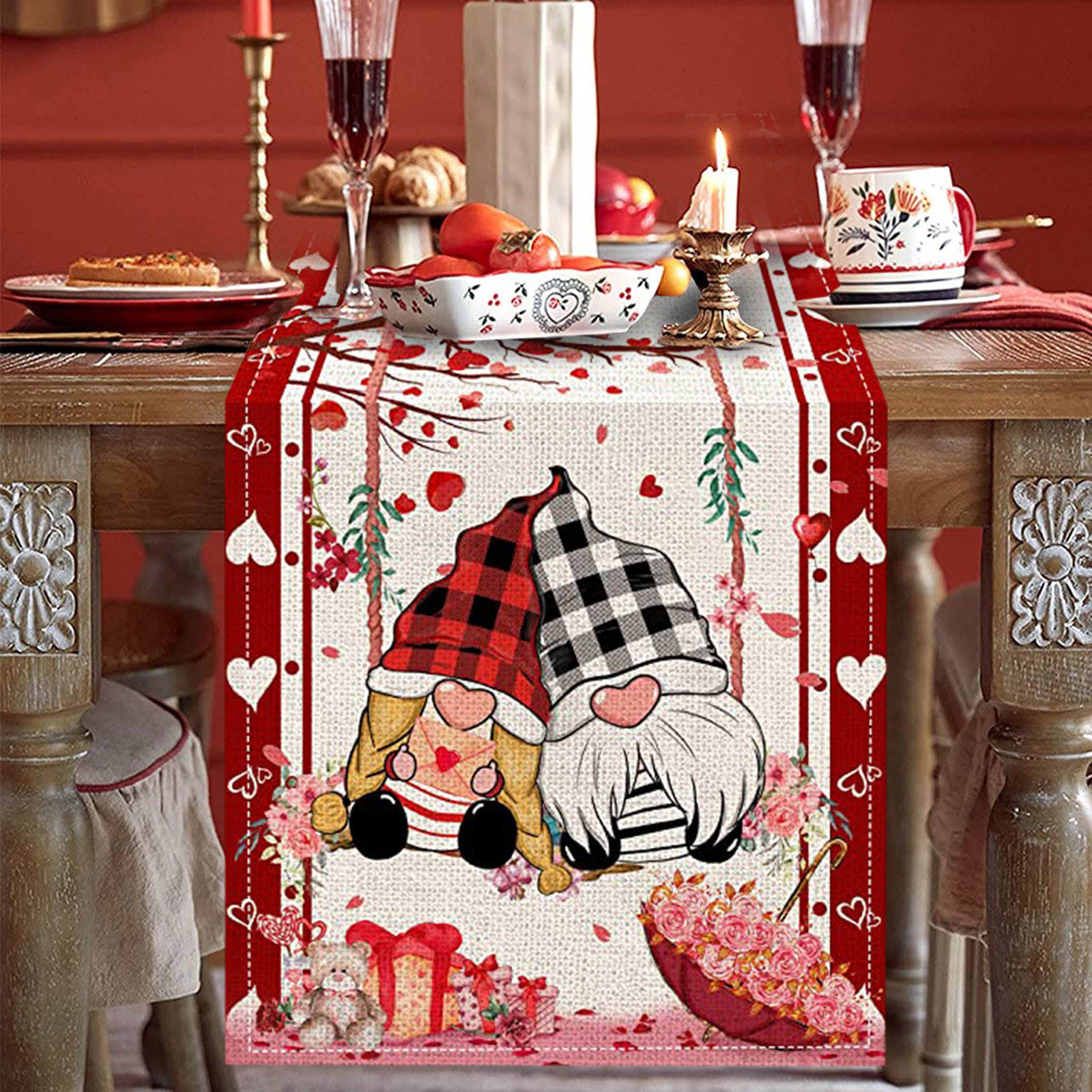 Декорированные настольные флаги на День святого Валентина Семейные посиделки Ретро украшение кухонного стола интерьер на открытом воздухе