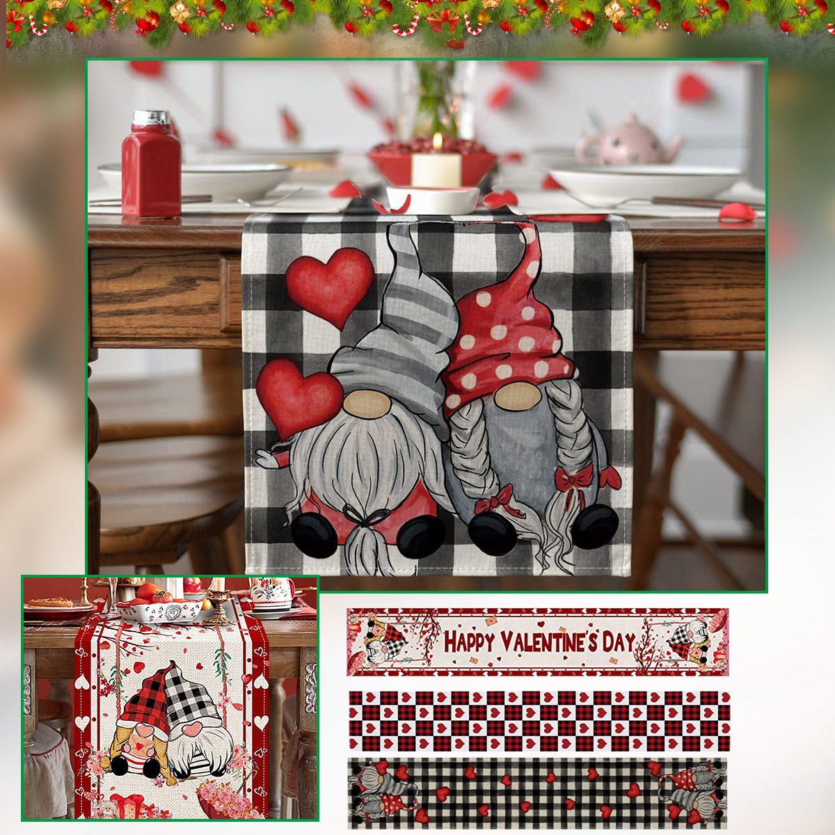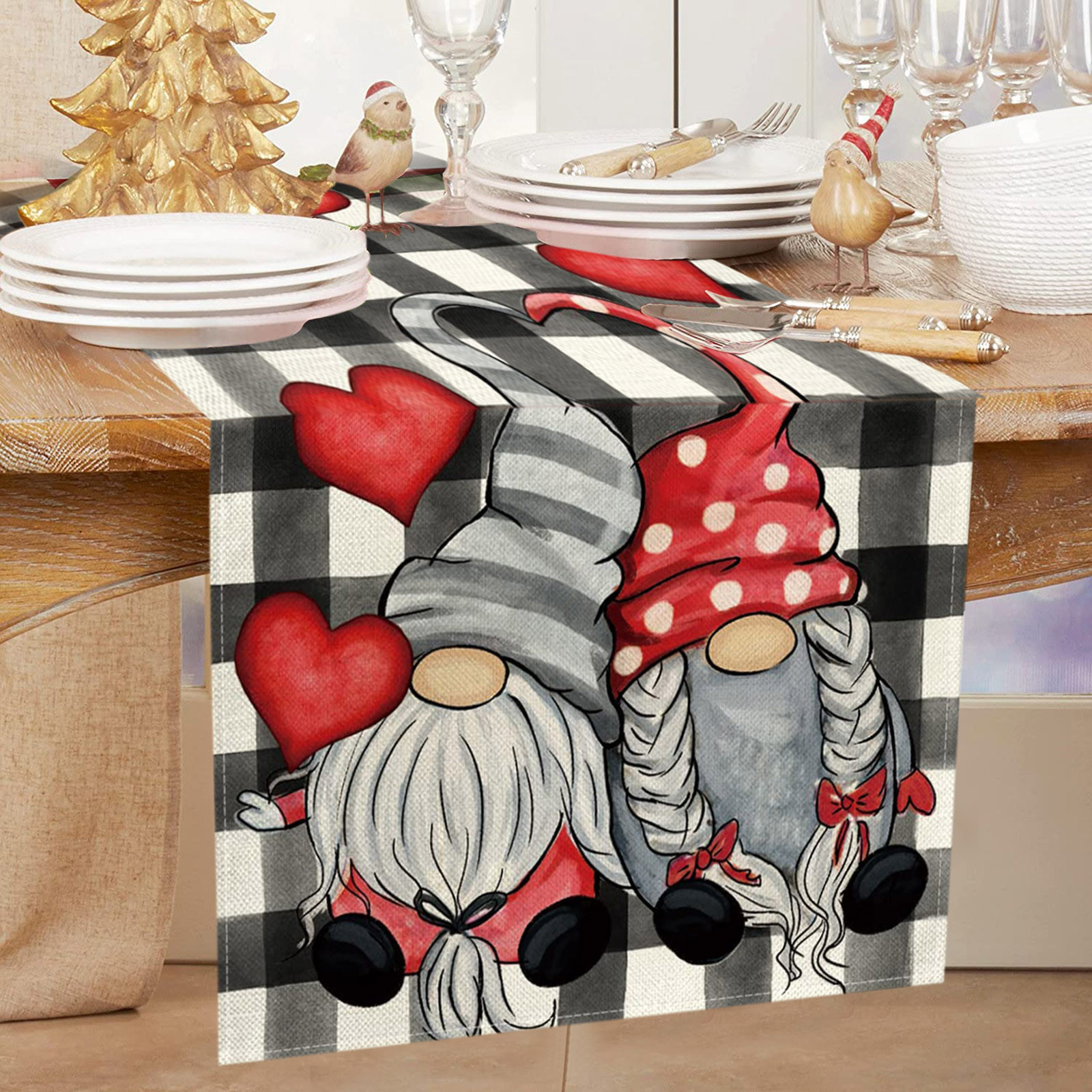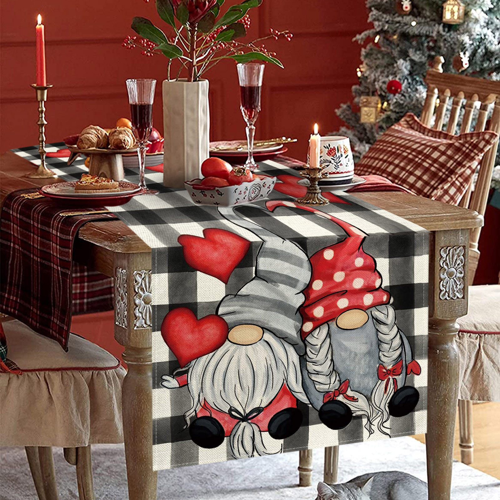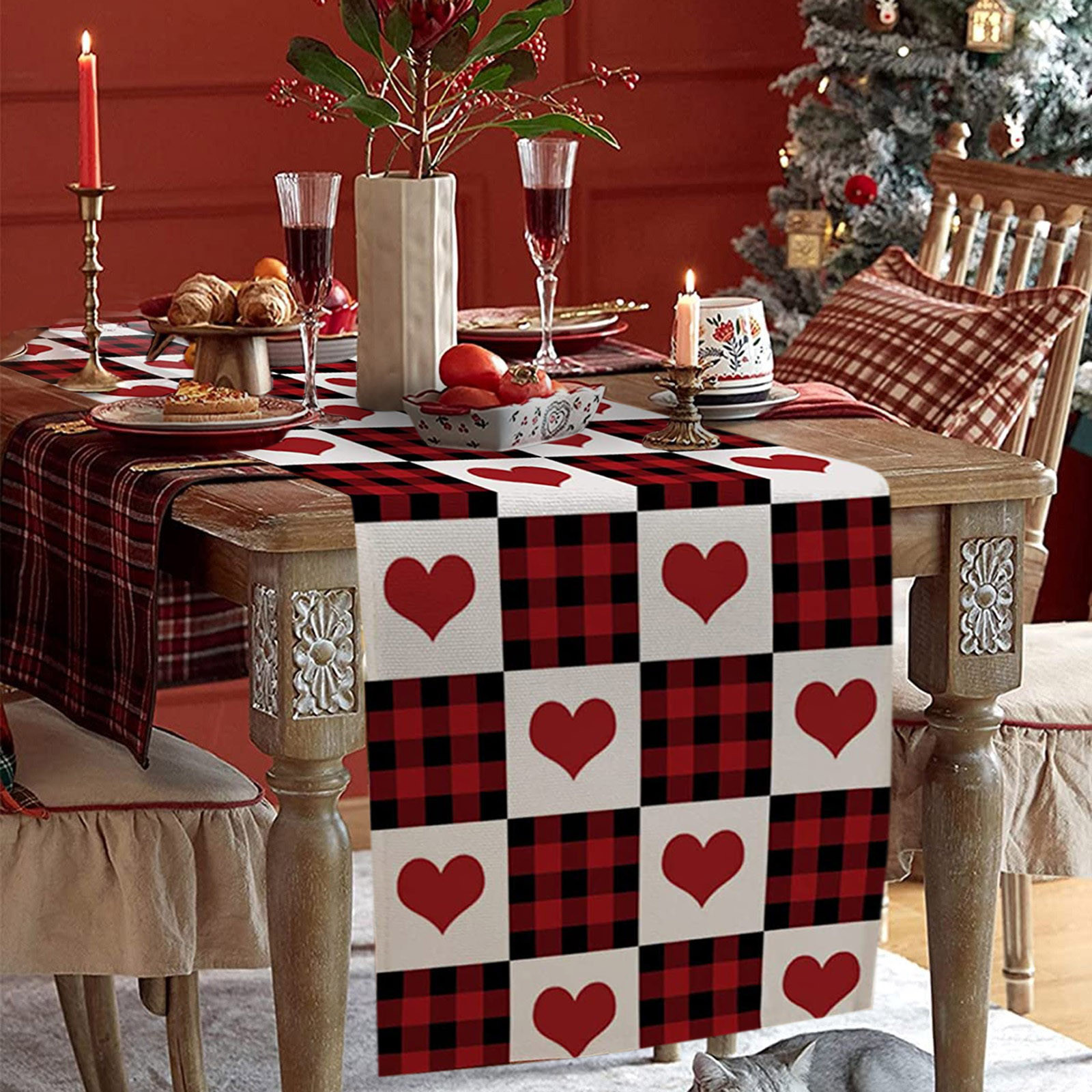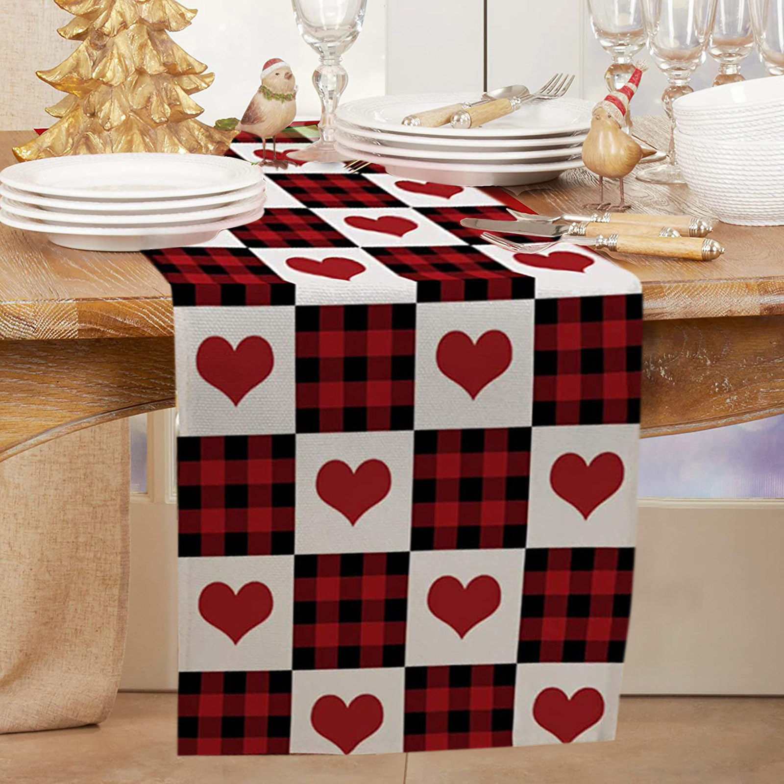 Декорированные настольные флаги на День святого Валентина Семейные посиделки Ретро украшение кухонного стола интерьер на открытом воздухе