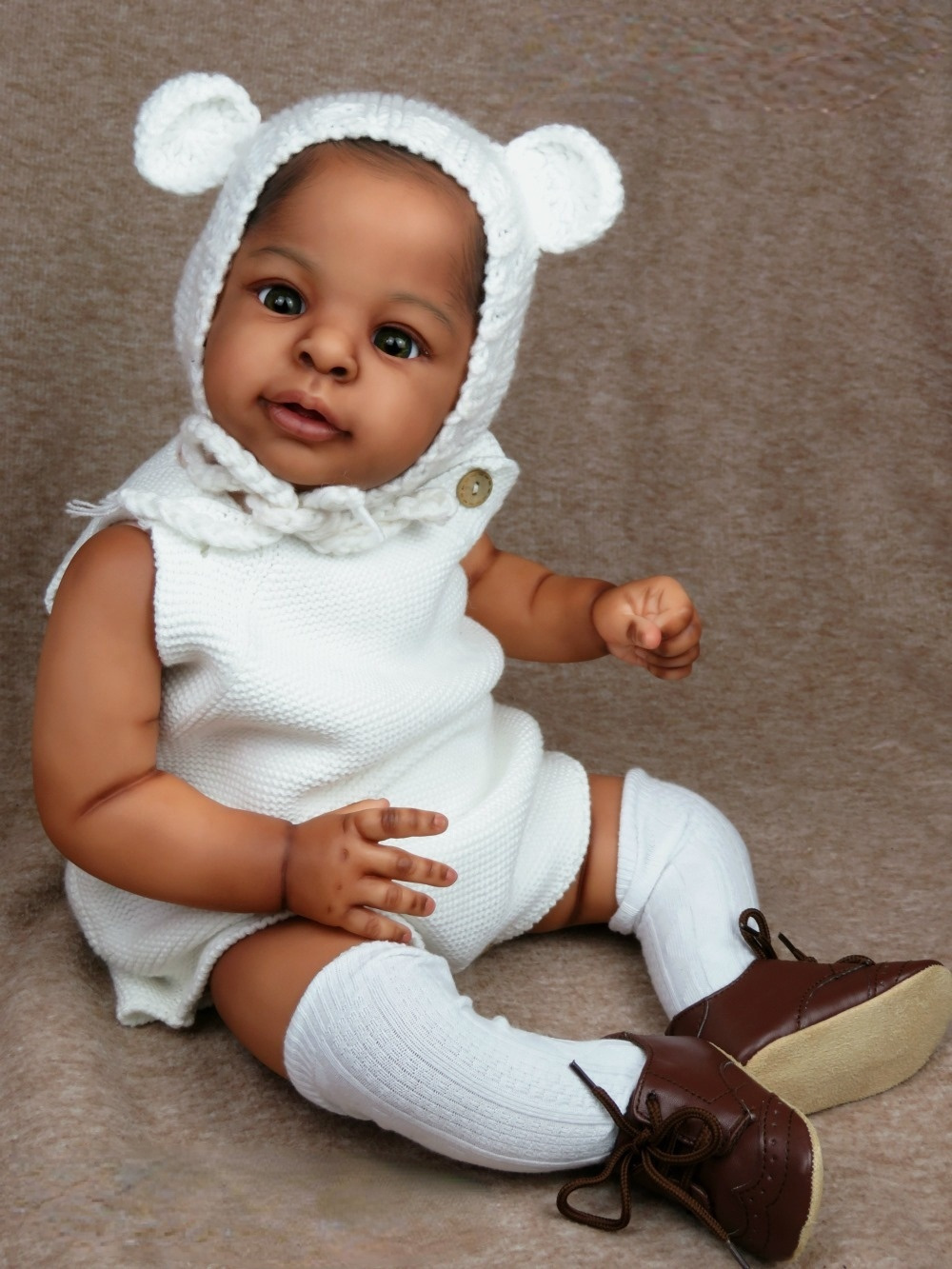 Голова и конечности изготовлены из силикона. Изготовлен из импортного мягкого винилового материала, нетоксичный; Кукла может двигаться на четвереньках, сидеть или лежать.