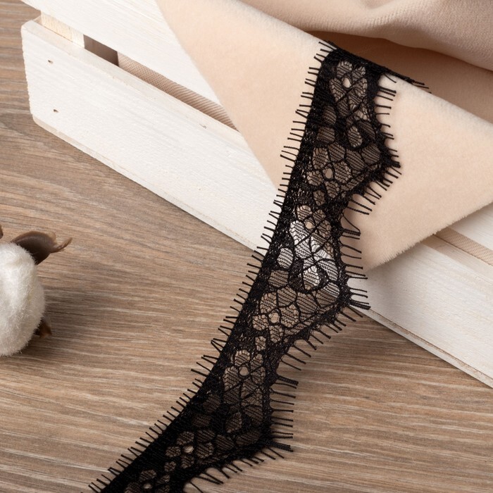 Комплектация: Кружево реснички, 38 мм × 9 ± 1 м, в бобине 3 шт по 3 м, цвет чёрный