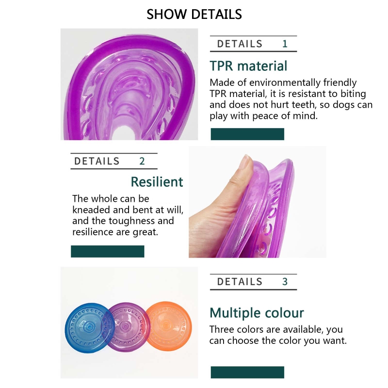 Характеристики: прочный материал: Наши летающие диски для собак изготовлены из нетоксичного материала, не содержащего BPA безвредного материала TPR, который является мягким, гибким, прочным, материал поможет очистить зубы и рот вашей собаки.