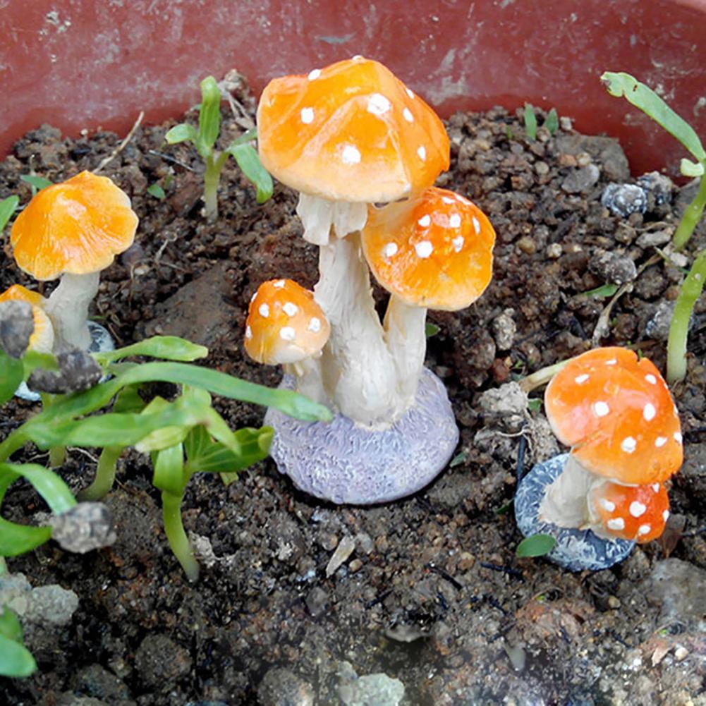 Эти реалистичные маленькие грибы делают отличный садовый орнамент.