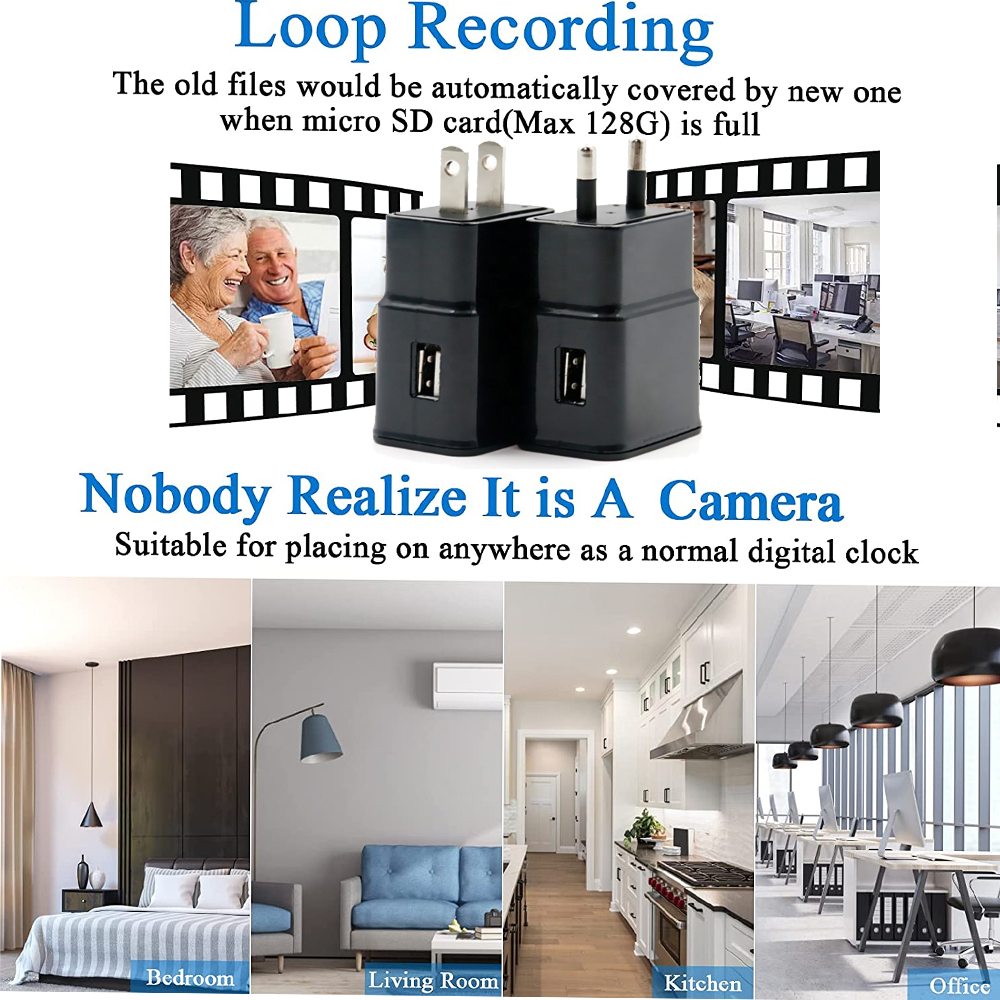 This Security Camera Is Also A USB Charger, It Can Record Full Hd 1080p Video While Charging The Device Without Being Noticed, Monitor The Baby At Home, Office Or Car Security Camera , Pets, Nanny, Thieves Or Employees.