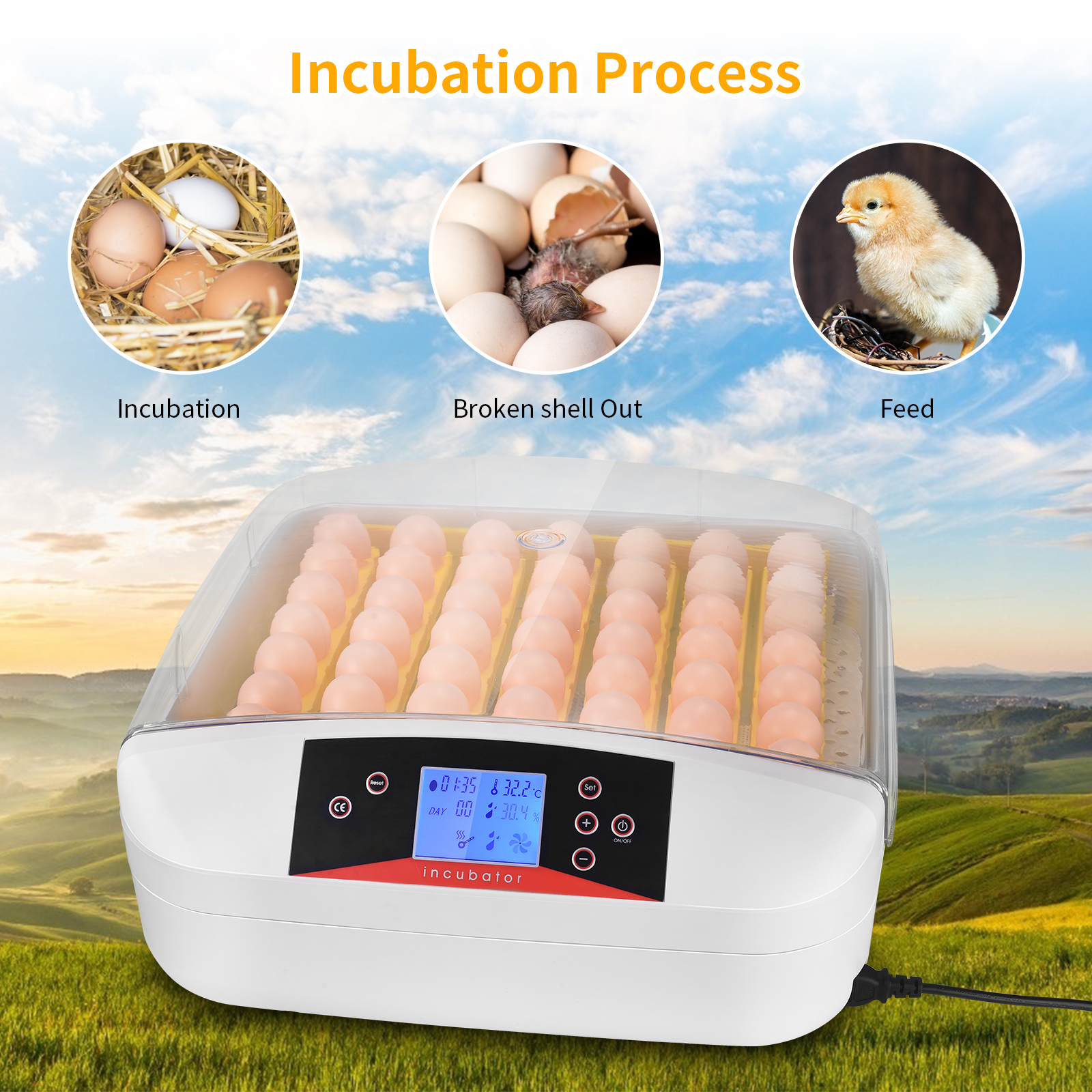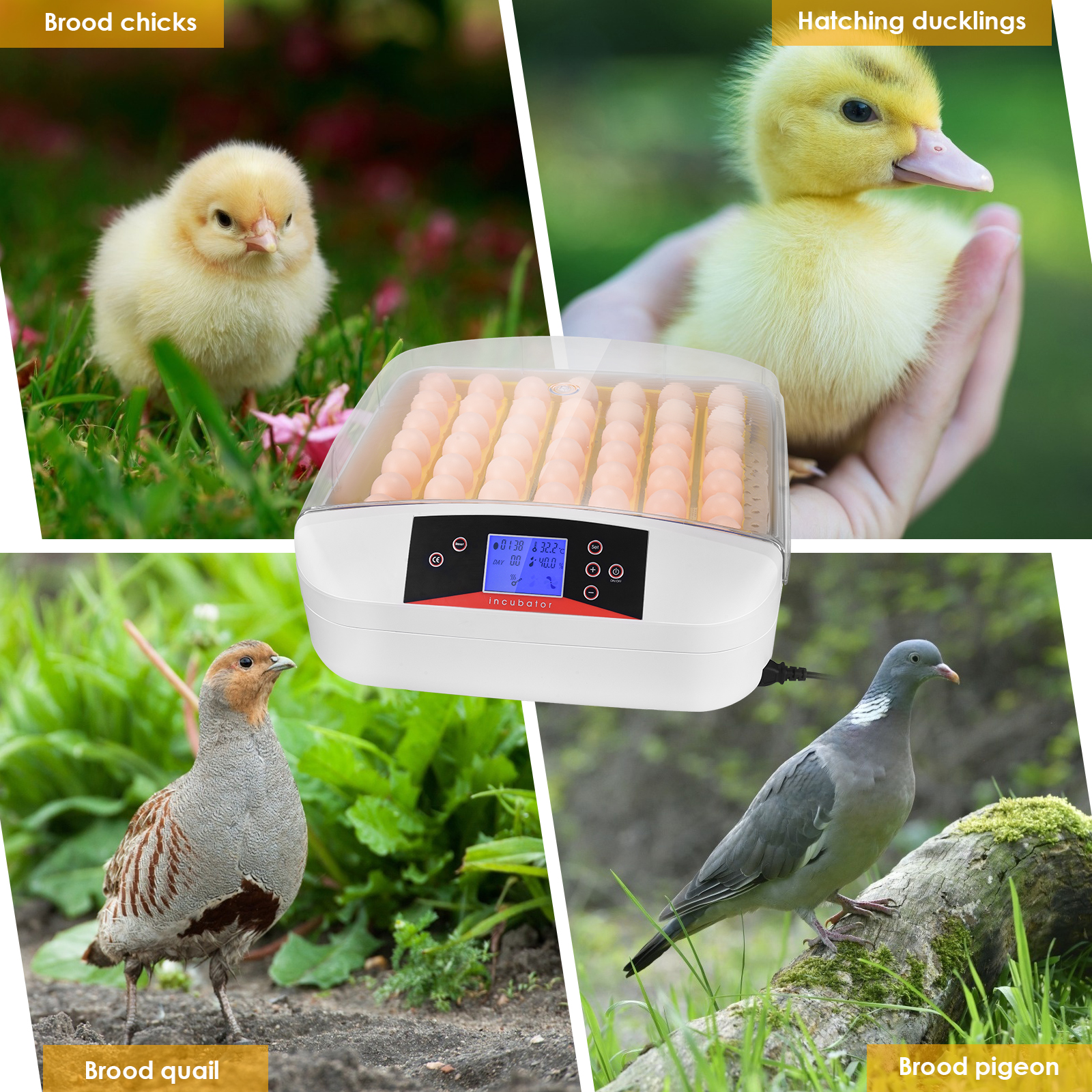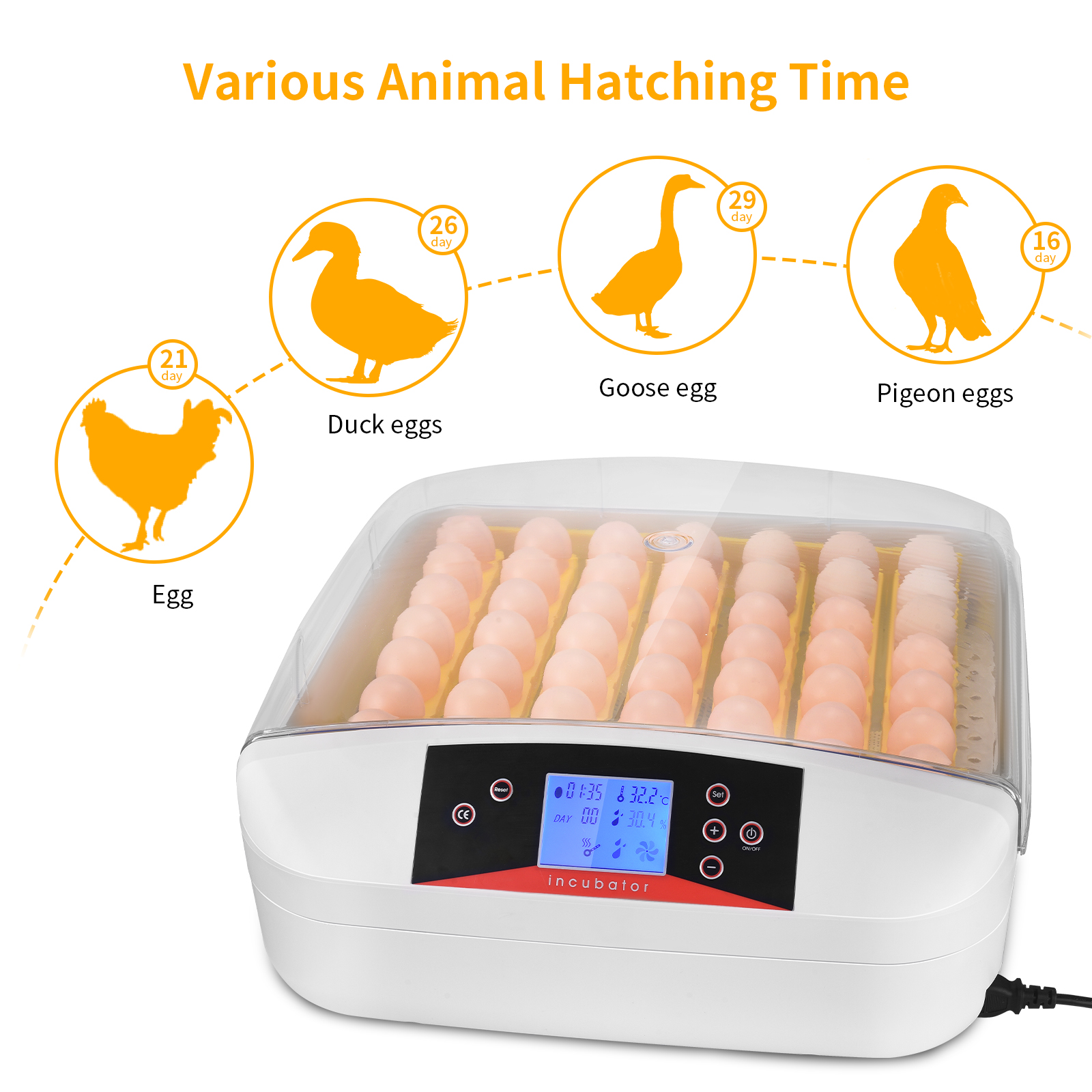 【Широкое применение-инкубатор может вмещать 55 яиц, с фиксированным желобом для яиц, прозрачная верхняя крышка из АБС-пластика, вы можете четко наблюдать процесс вылупления, подходит для курицы, голубя, перепелиные и другие яйца птицы.