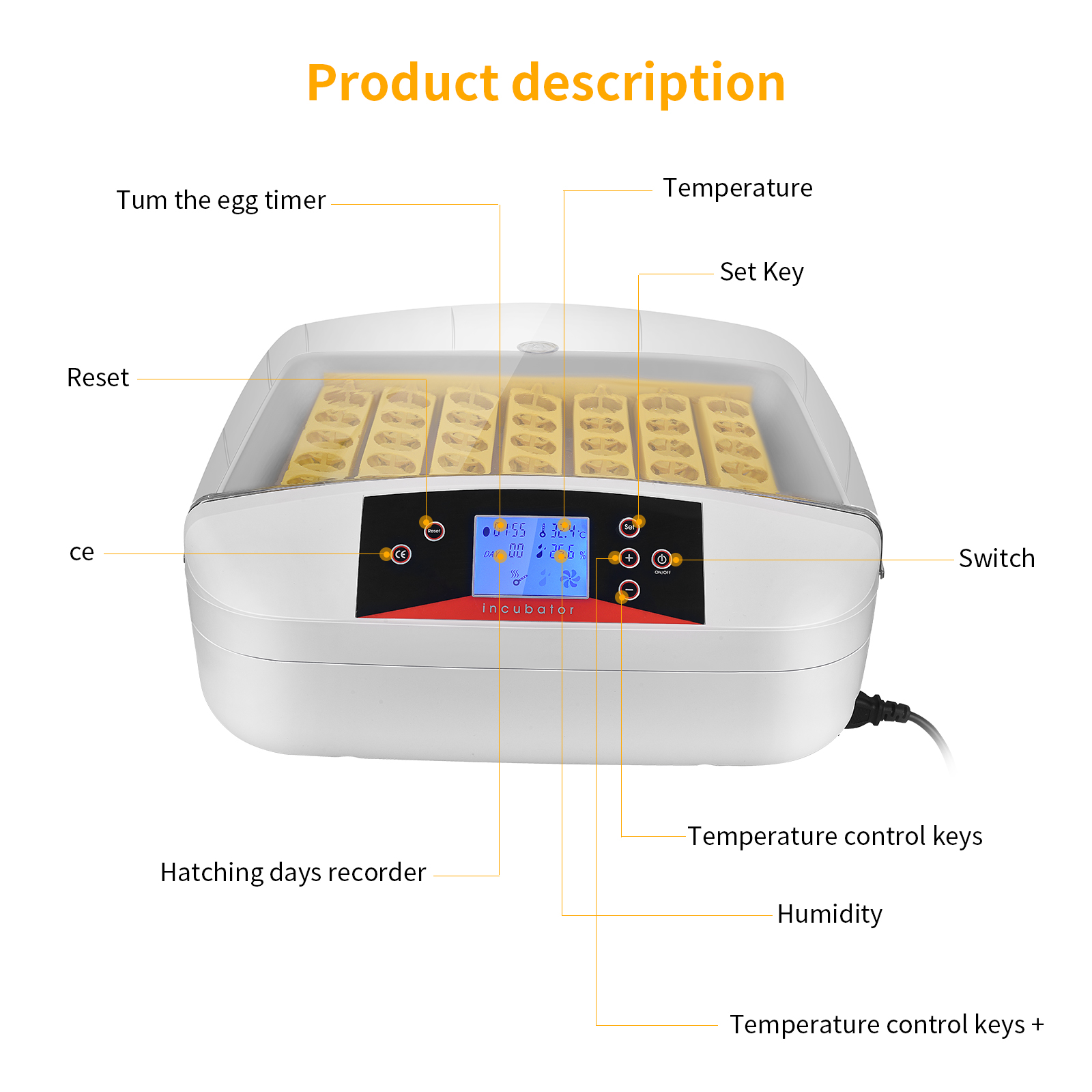 Полностью автоматический инкубатор, инкубатор для яиц, инкубатор с ЖК дисплеем высокой четкости, автоматический поворот яиц, контроль температуры и отображение дней инкубации