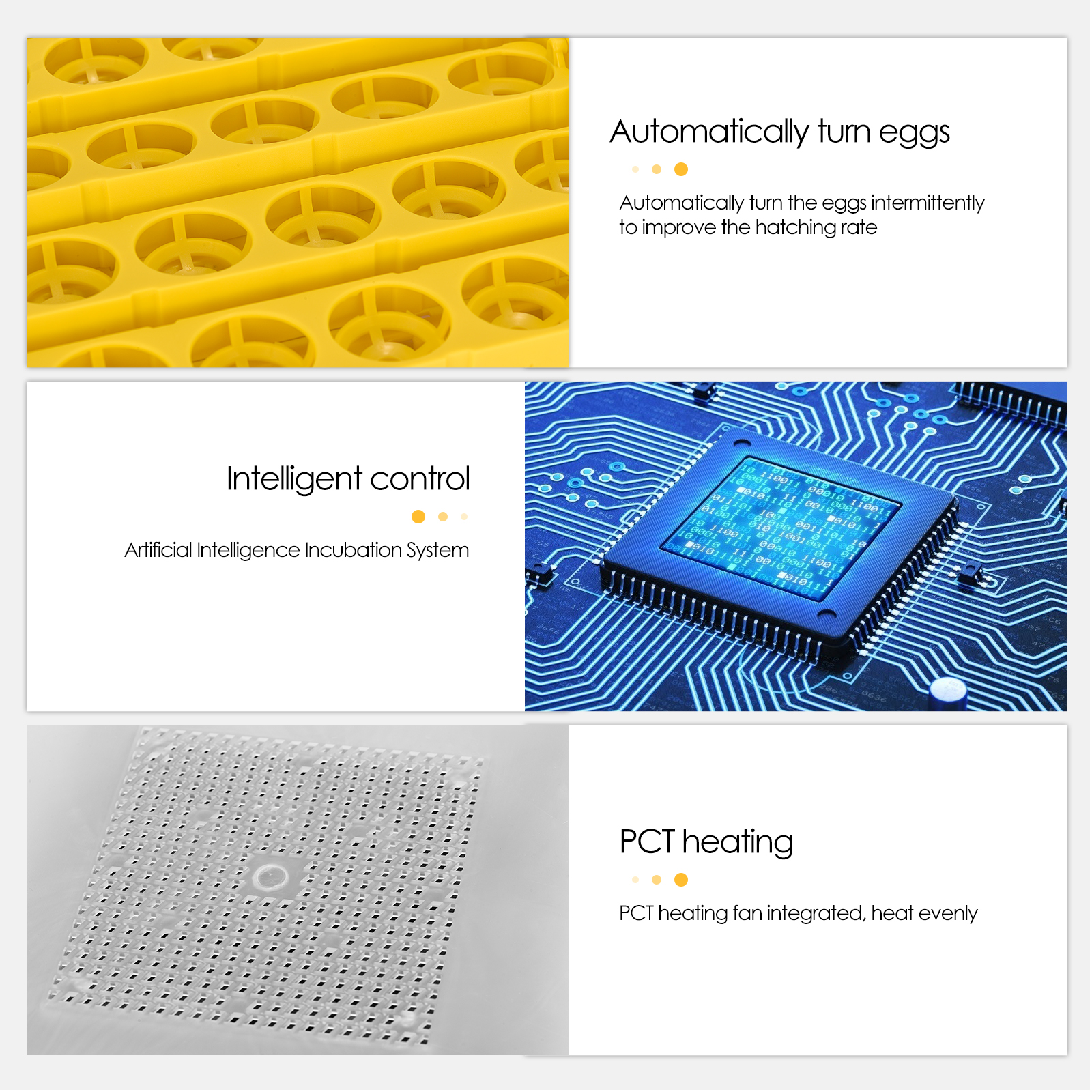 【Автоматический поворот Eggs】-инкубатор Автоматически поворачивает яйца каждые 2 часа. Автоматический поворот яиц может сэкономить ваше время и дать вам больше времени, чтобы сделать свои собственные вещи. В то же время Избегайте слишком большого прямого контакта с яйцами, чтобы увеличить скорость вылупления.