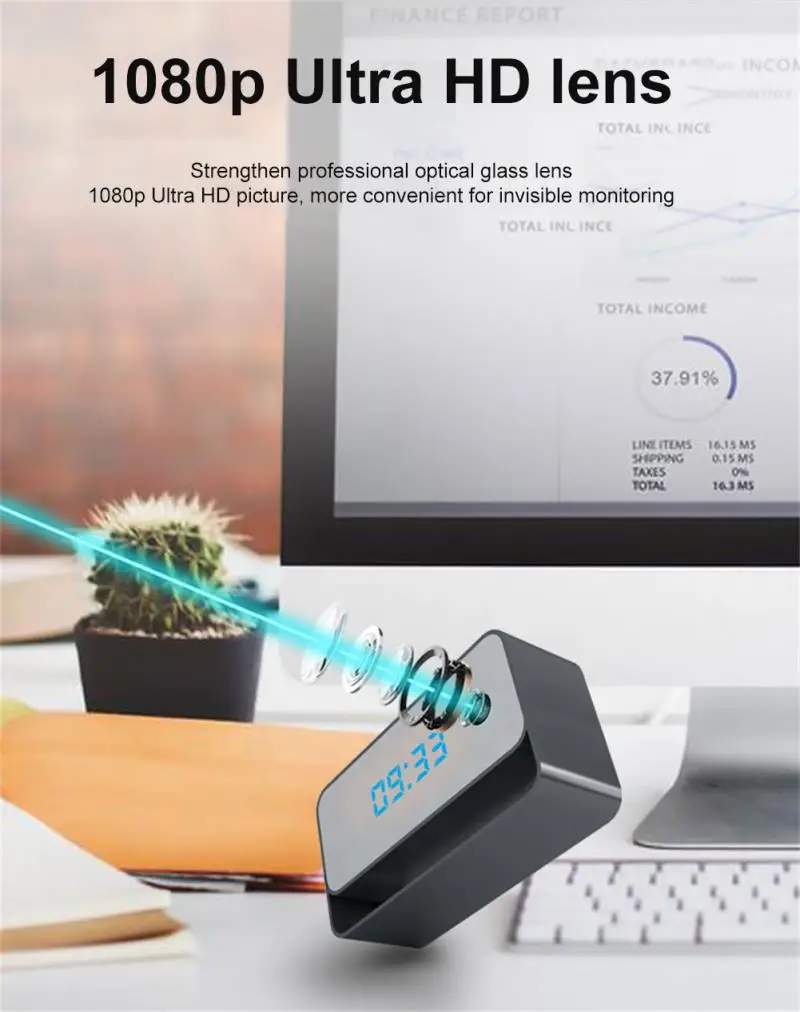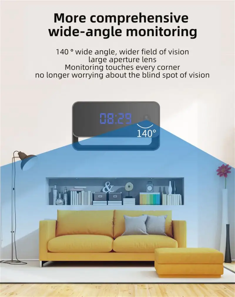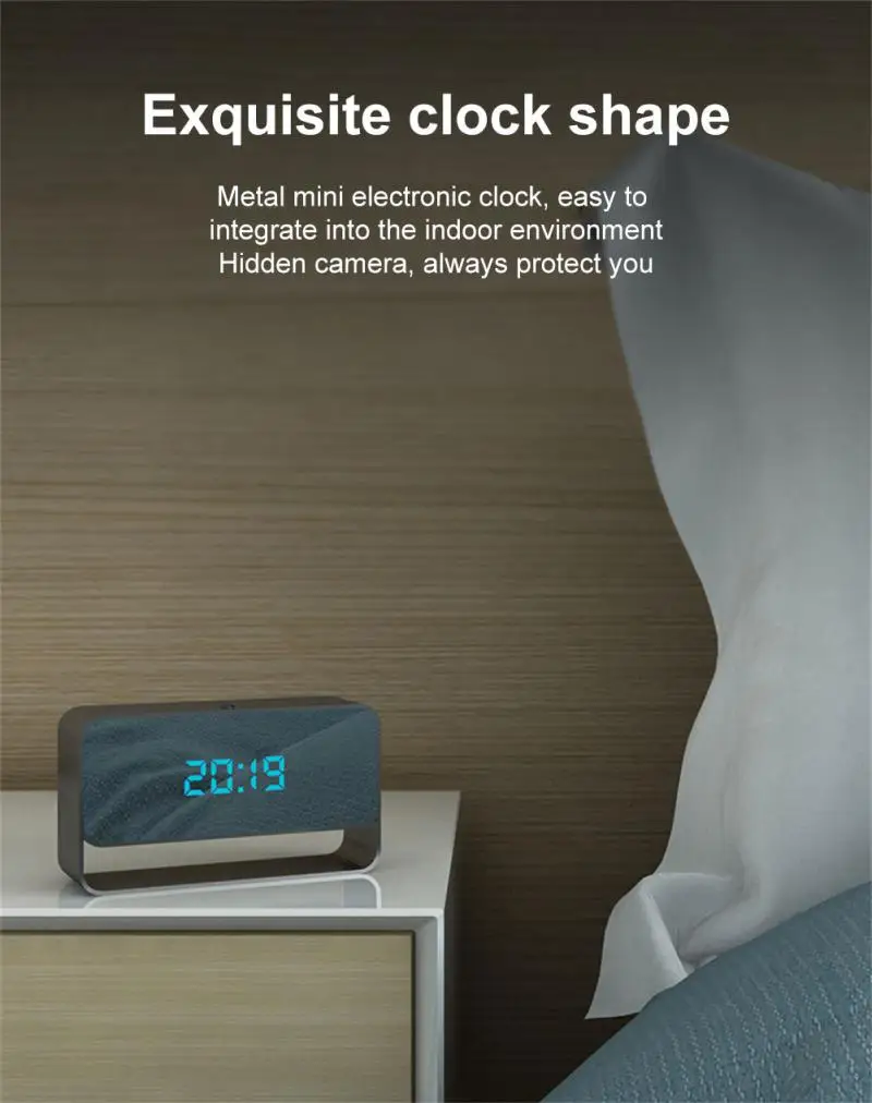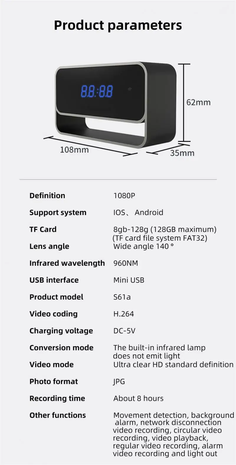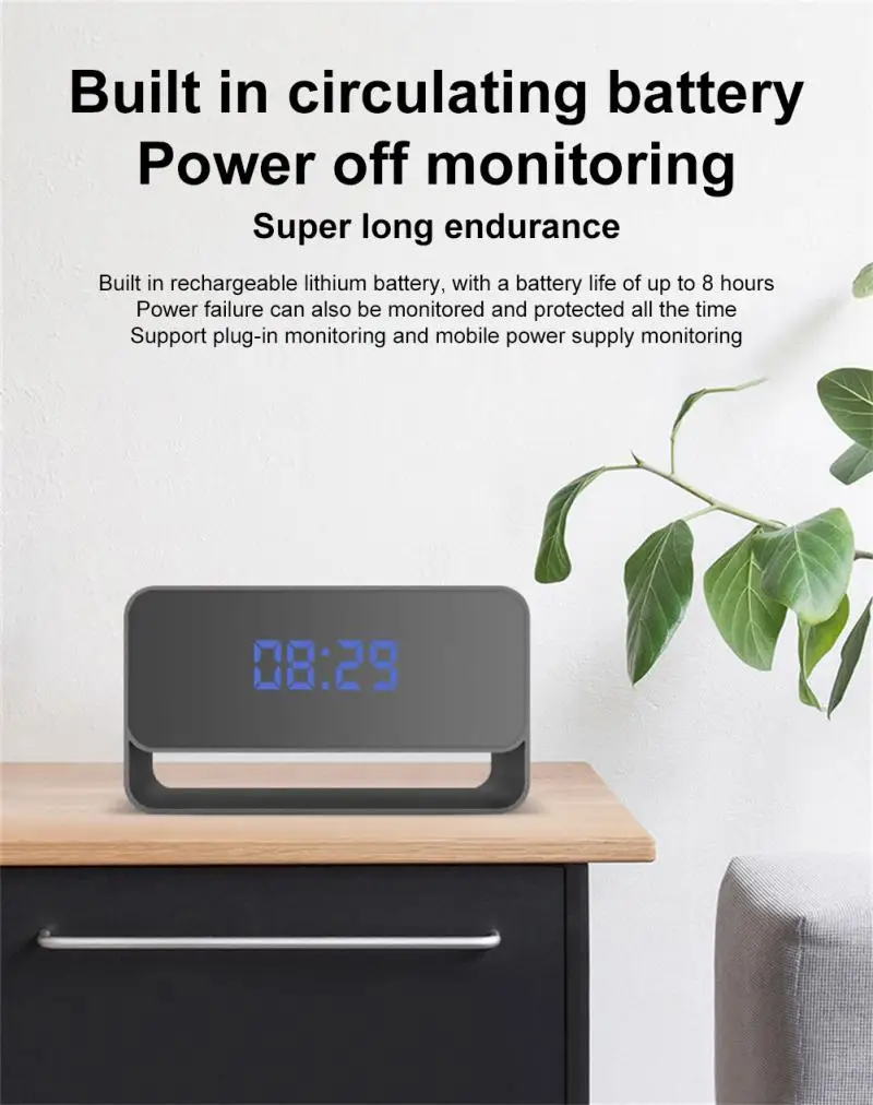 【Невидимый механизм камеры 】эта Скрытая камера выглядит как обычные часы и может показать ваше время. Объектив спрятан под глянцевым экраном, поэтому никто его не заметит. Отличный выбор для камер наблюдения в вашем офисе и дома. Вам не нужно беспокоиться о том, что произойдет с вашим питомцем, ребенком или няней.