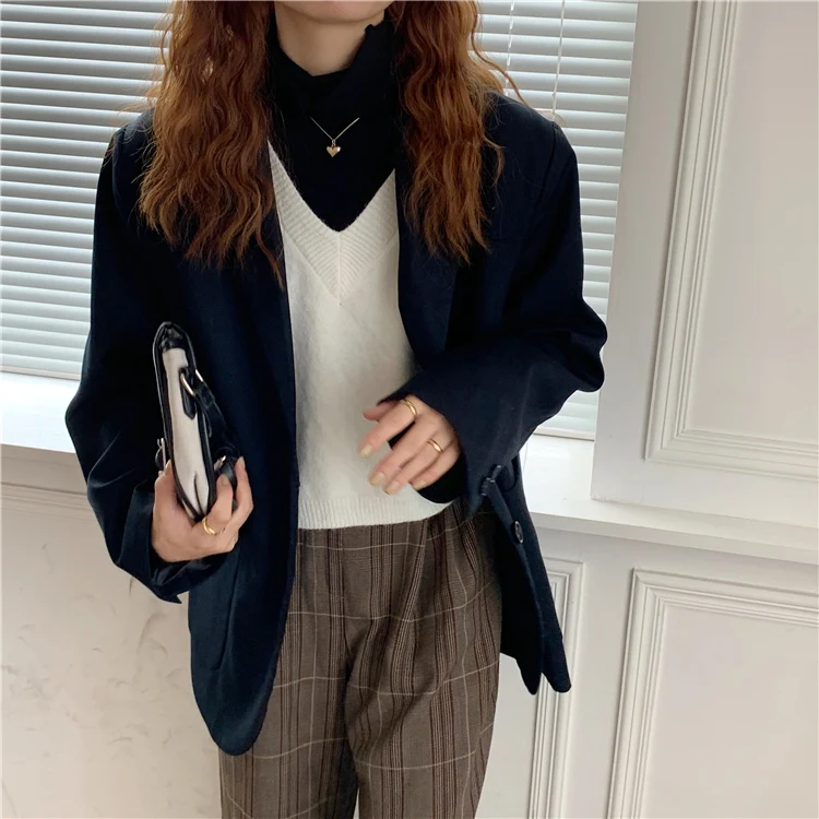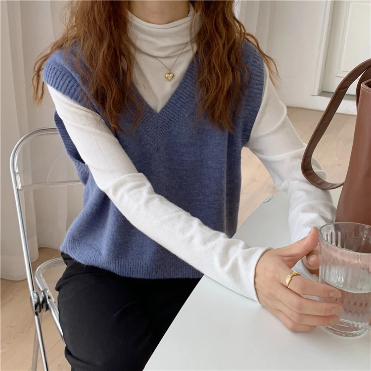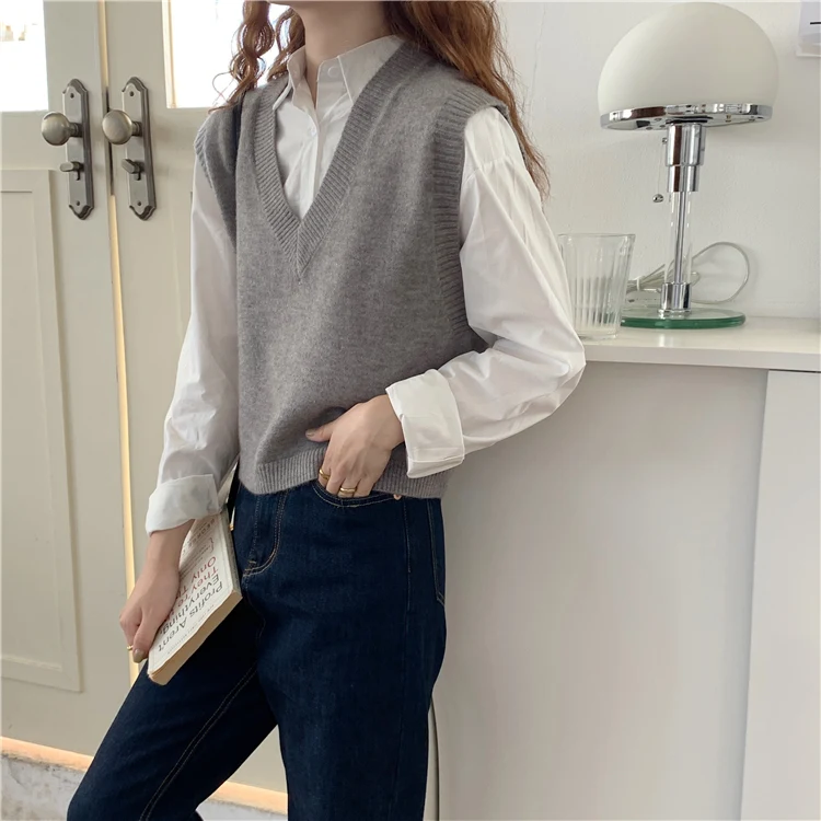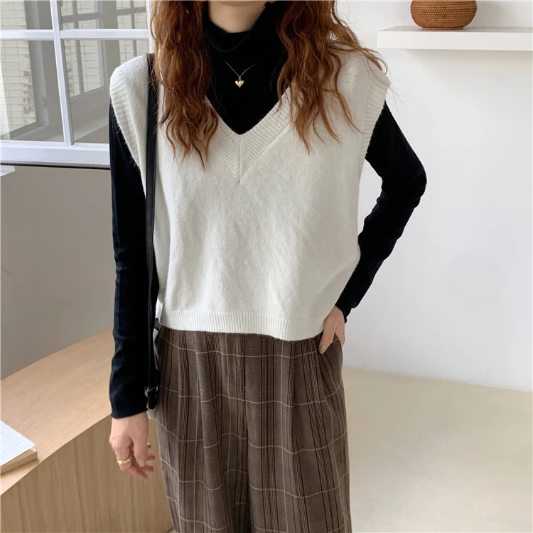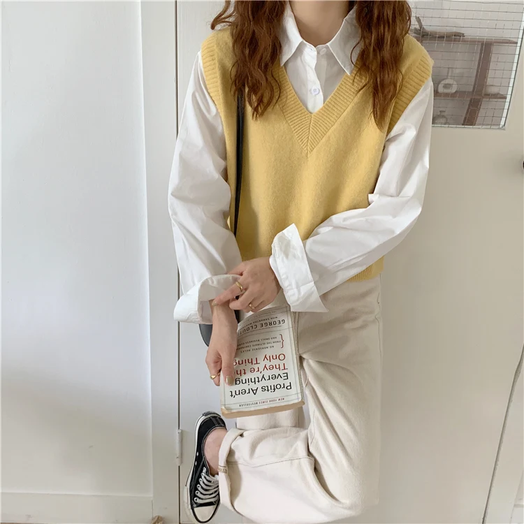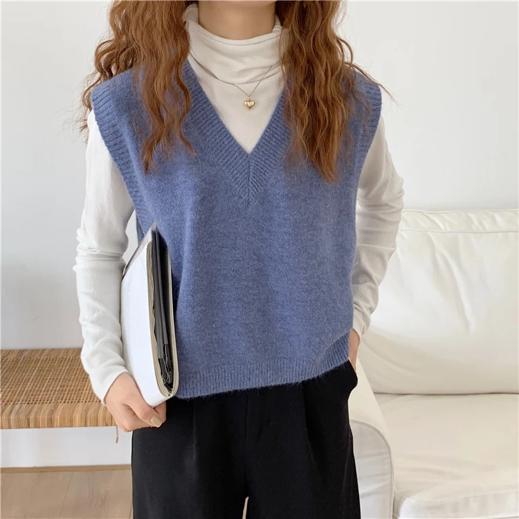 TingYiLi, корейский стиль, базовый Однотонный свитер, жилет для женщин, весна-осень, v-образный вырез, вязаный свитер без рукавов, пальто, школьный женский жилет для девочек