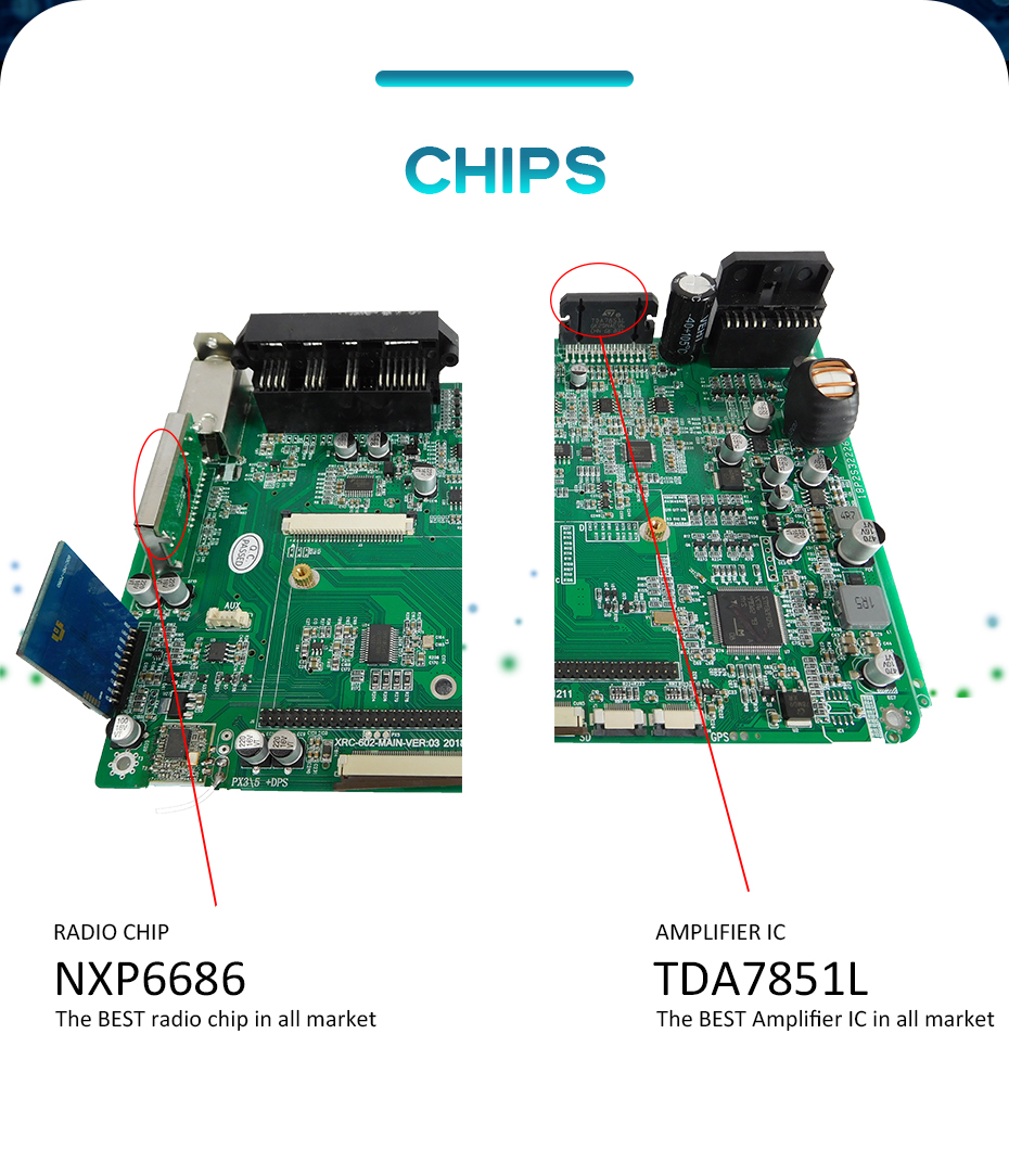 TDA7851L является лучшим амплитудным IC на рынке в настоящее время. Лучше, чем 7388, и все остальные. Это делает качество звука автомобиля лучше, чем у других типов радио. Если вам нужно лучшее качество звука, мы предлагаем вам также выбрать функцию DSP, DSP-это система цифрового усилителя, которая предлагает лучшее качество звука.
