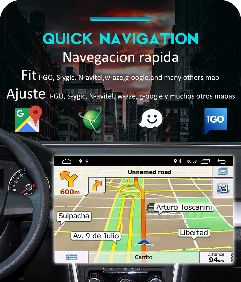 Это радио может устанавливать все типы карт, I-GO,N-avitel, W-aze, s-ygic... и т. Д. Вы можете установить любую карту на радио по вашему желанию. И он также поддерживает google map, вы можете установить приложение google map и связать сеть, затем вы можете использовать его.