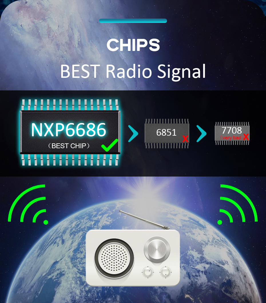 Чип NXP6686 является лучшим радиочипом, и лучше than7708,6851 и любой другой радиочип. Это лучший радиочип на рынке в настоящее время. Хороший радиочип делает радиосигнал более сильным.