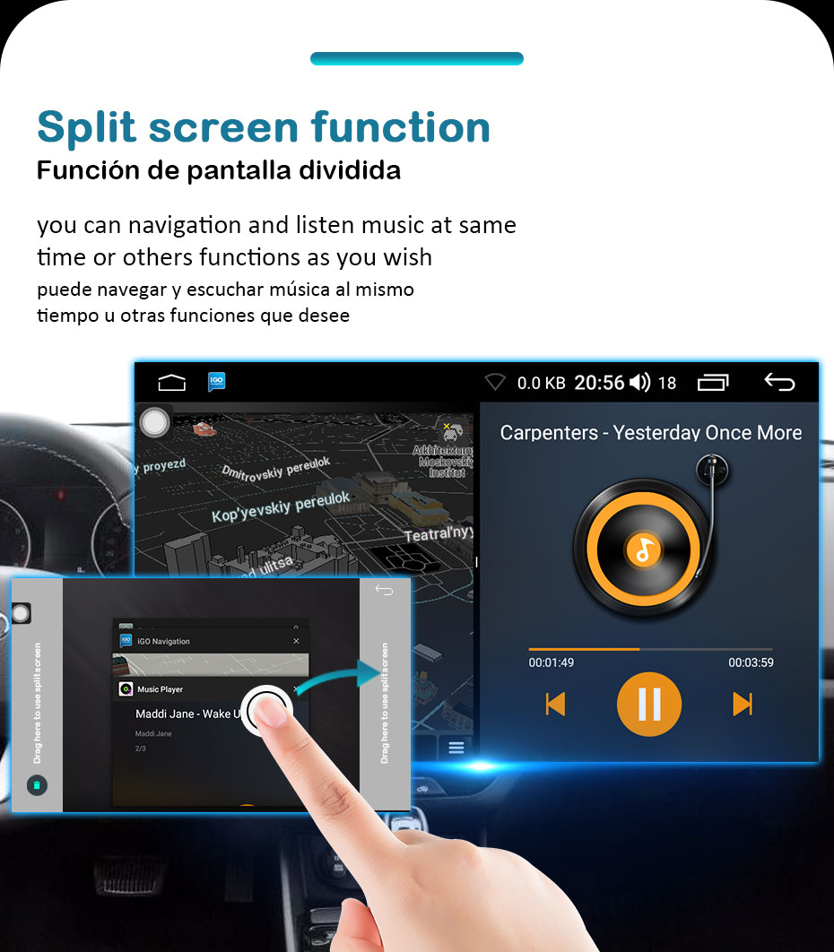 Это Радио имеет функцию разделения экрана, которую вы можете смотреть видео во время навигации. И он также может одновременно выполнять две функции.
