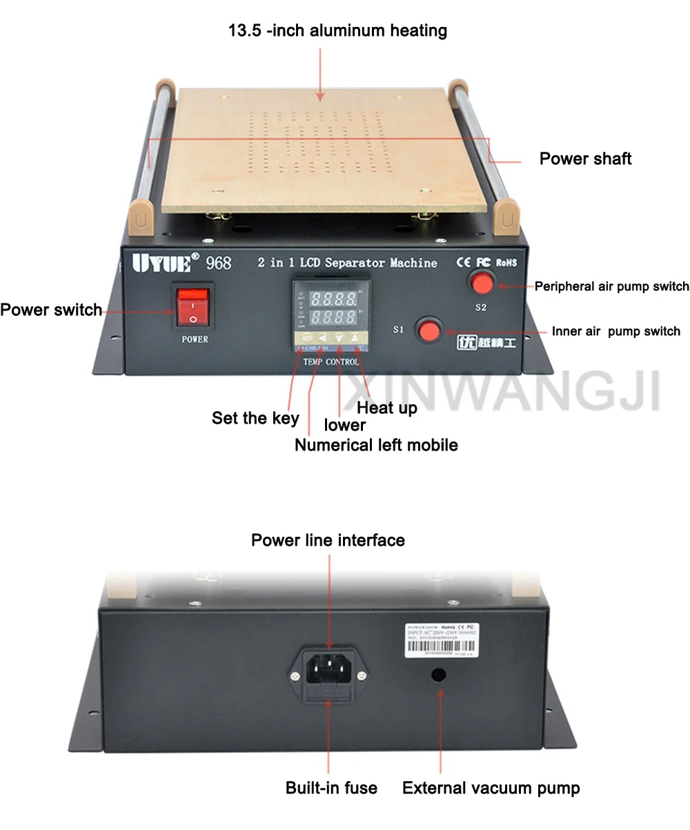 UYUE 968 14 дюймовым экраном сепаратор встроенный двойной вакуумный насос для iPad/Samsung планшетный ПК ЖК-разделитель экрана с общей топливной магистралью