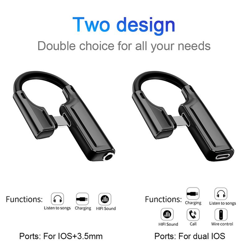 B. Кабель Lightning + 3,5 мм джек, поддерживает одновременную зарядку и прослушивание песен, но не поддерживает звонки.