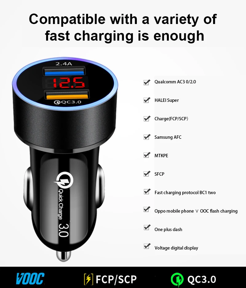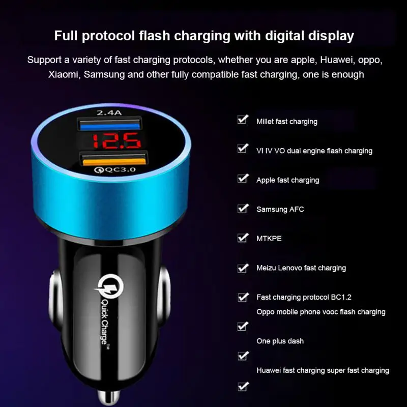 Многофункциональный двойной Usb цифровой дисплей автомобильное зарядное устройство Автомобильное мини зарядное устройство сотовый телефон Быстрая зарядка зарядное устройство автомобильное зарядное устройство