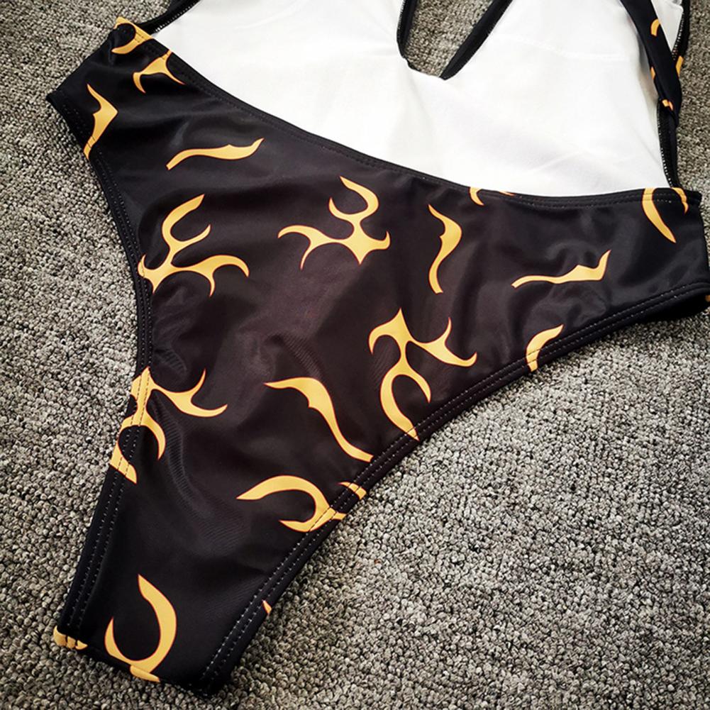 Из-за v-образной горловиной, пламенным принтом и перекрестной повязки на спине, Женский Монокини делает вас полными сексуального очарования.