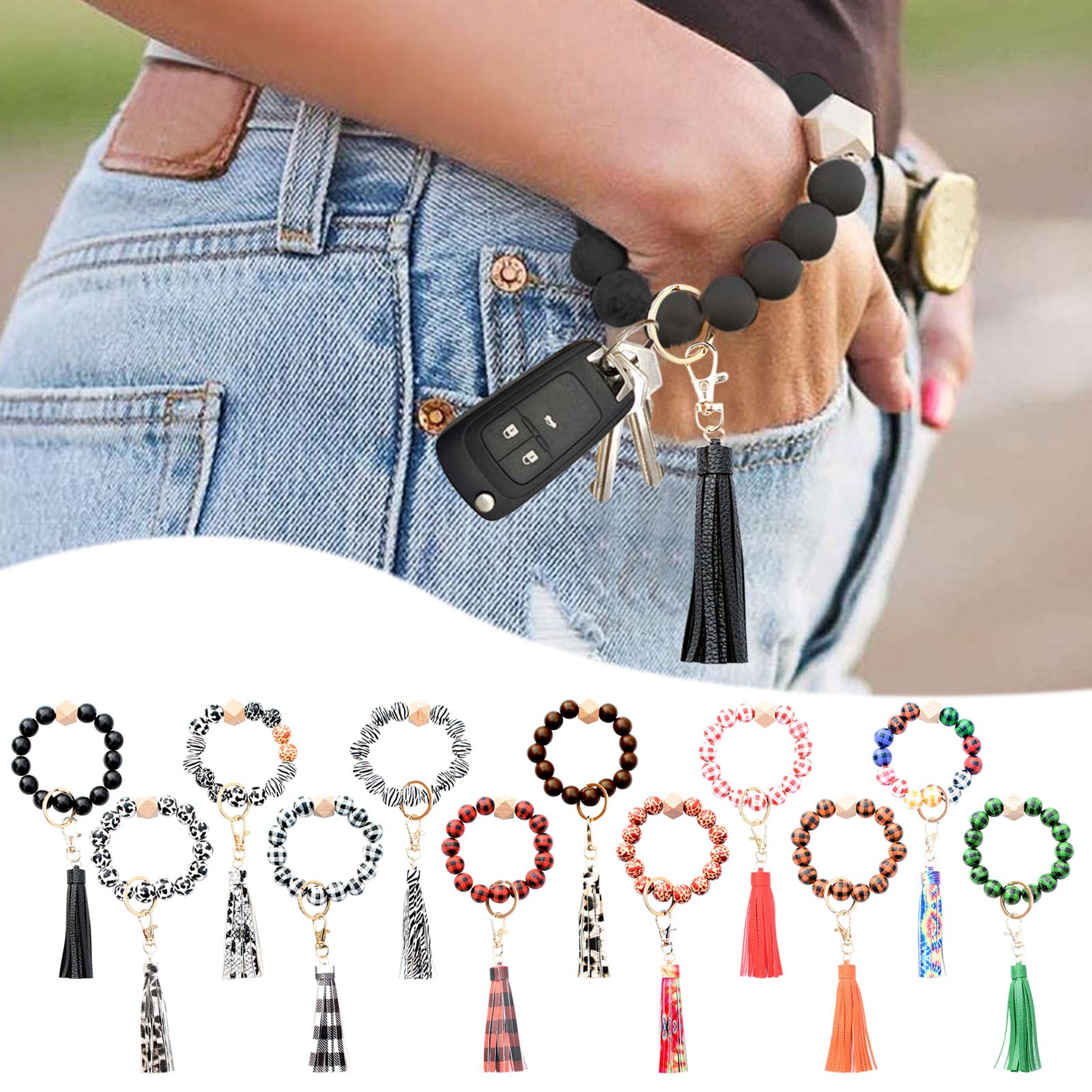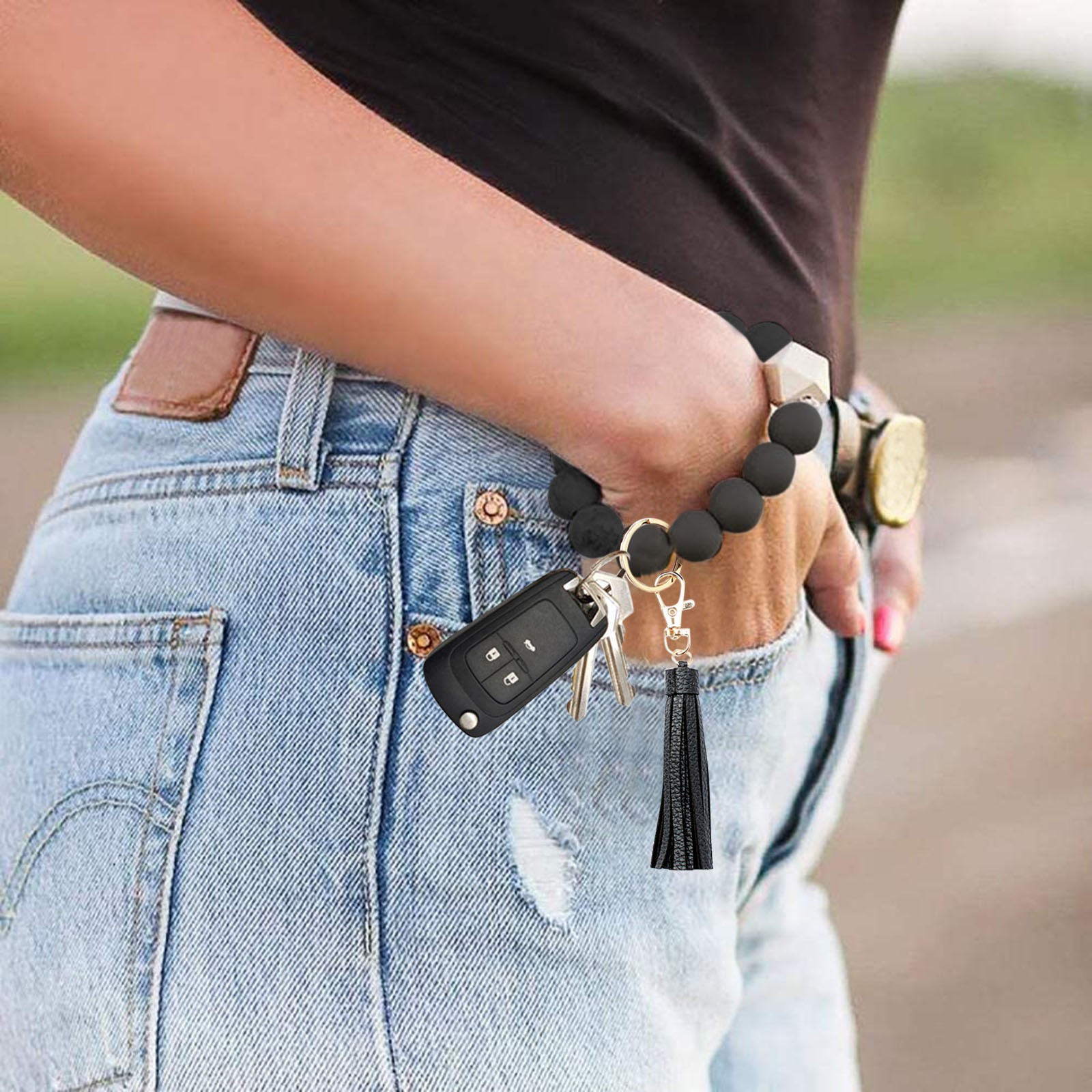 Хороший внешний вид:МилыйБраслетЛучше всего закрепить ключи на запястье или повесить на сумочку.Это красиво и очень модно с вашим ключом.