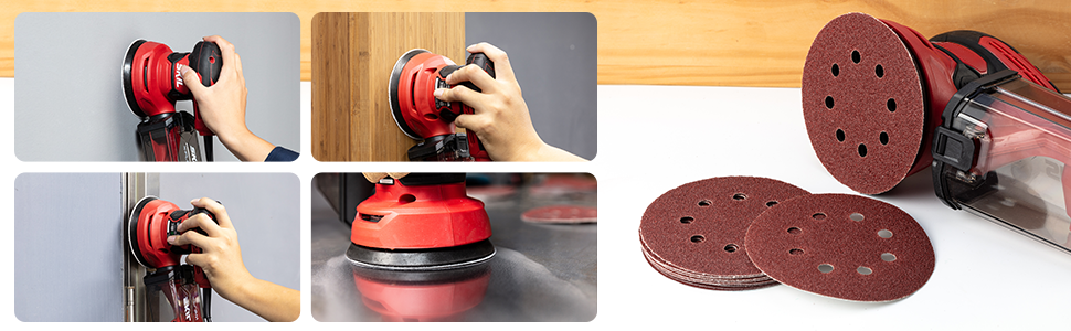 ✅Отличный дизайн:Конструкция с липучкой на липучке позволяет быстрее и проще снимать и заменять наждачную бумагу. И он держит сильное прилипание, чтобы избежать падения орбитальной шлифовальной бумаги. 8 отверстий предназначены для эффективного извлечения пыли. Решетки шлифовальных дисков печатаются на задней стороне для легкой идентификации.