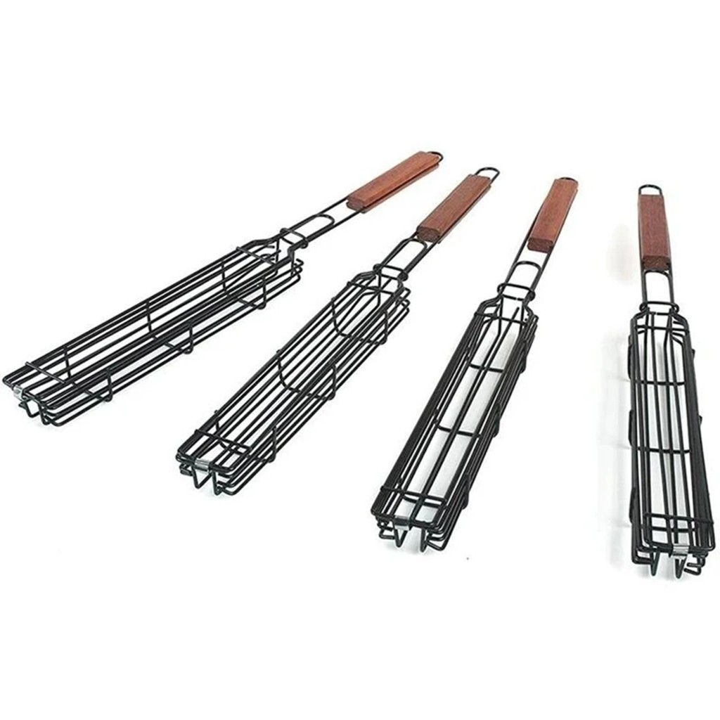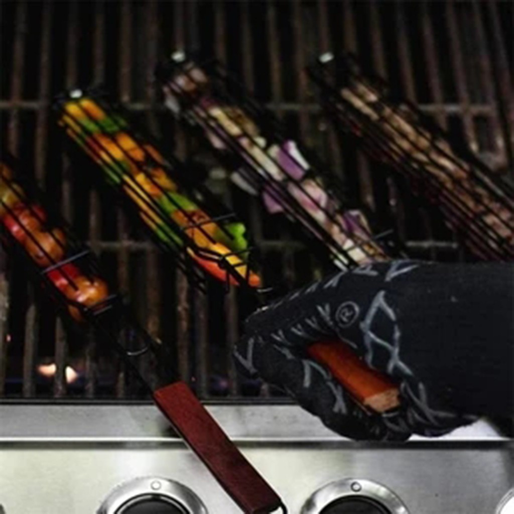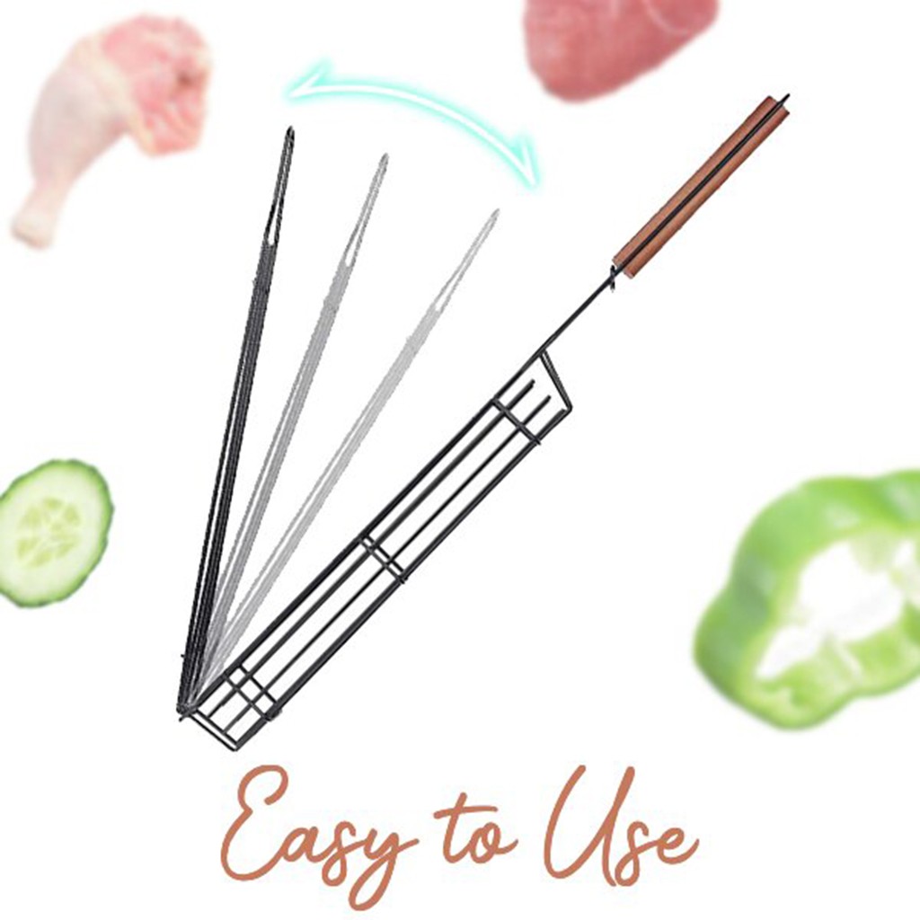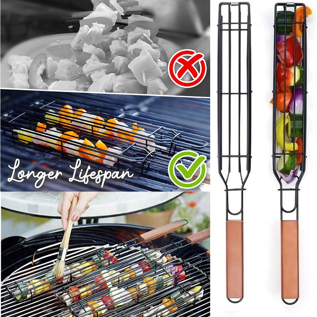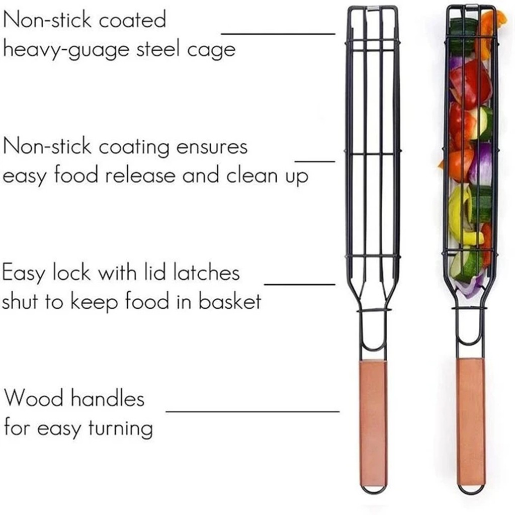 Изготовлен из тяжелой стали с антипригарным покрытием. В отличие от обычных шашлыков для барбекю, эти цельнометаллические корзины крепкие и никогда не горят.
