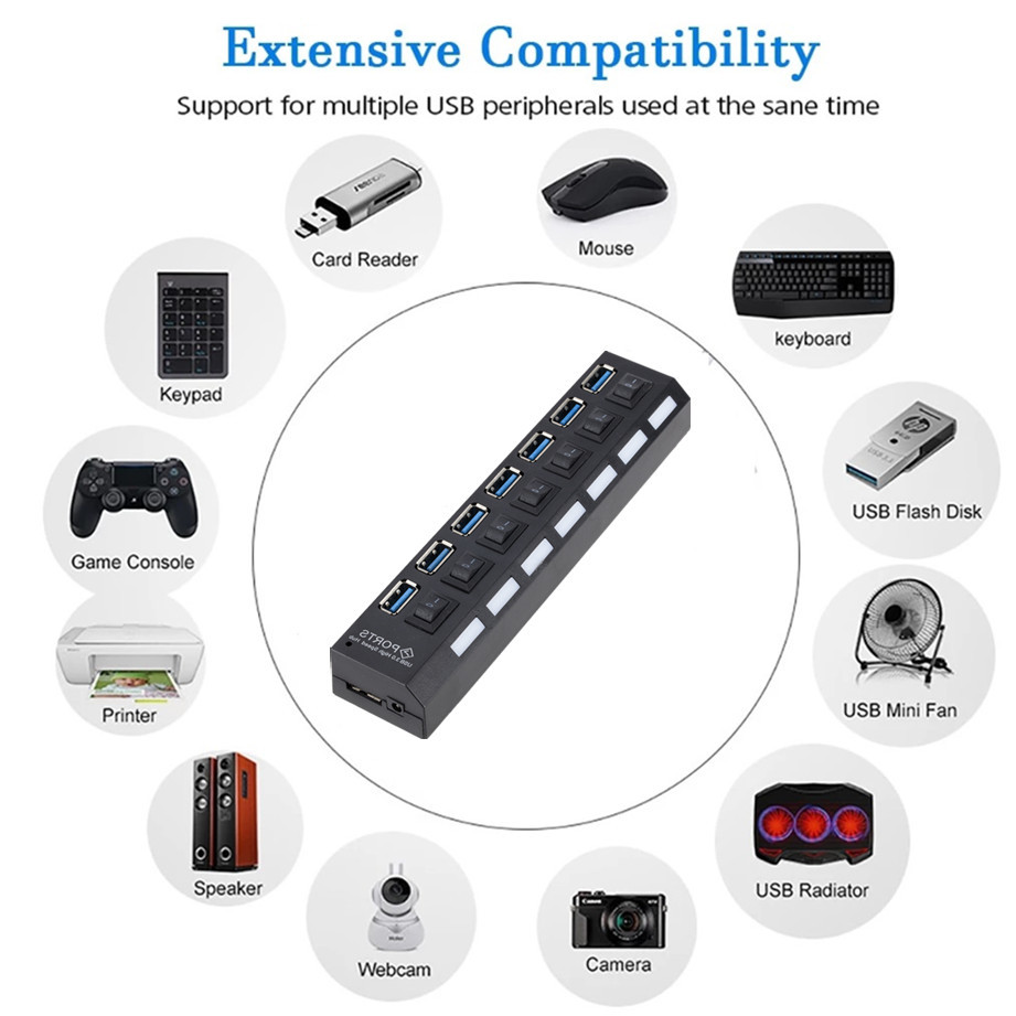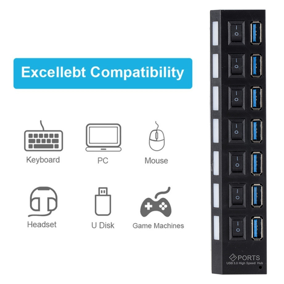 6. Разработанный с 7-портовый, эта компактная USB3.0 высокоскоростной концентратор достаточно мал для поездок, и кабеля достаточно, чтобы удовлетворить ваши потребности в подключении