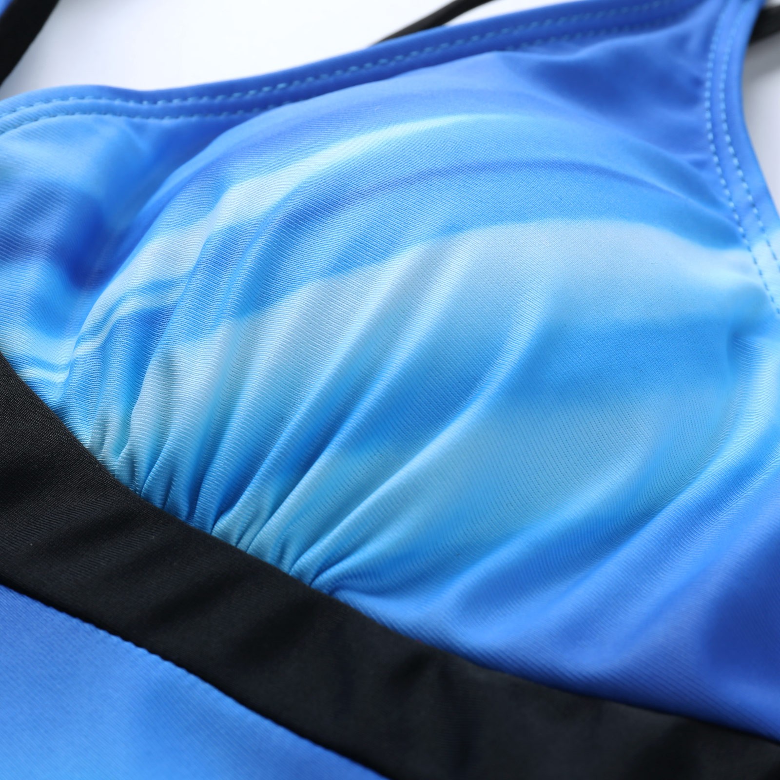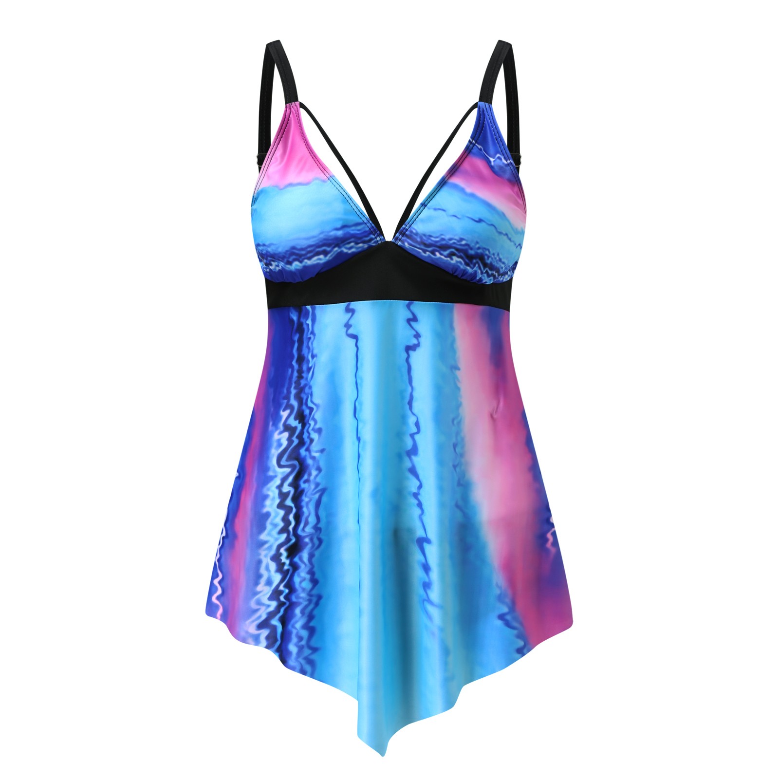 3. Женский танкини, обтекаемый Топ, обтекаемый пошив, ремешки на завязках, боковое бикини, два предмета, купальники, купальные костюмы