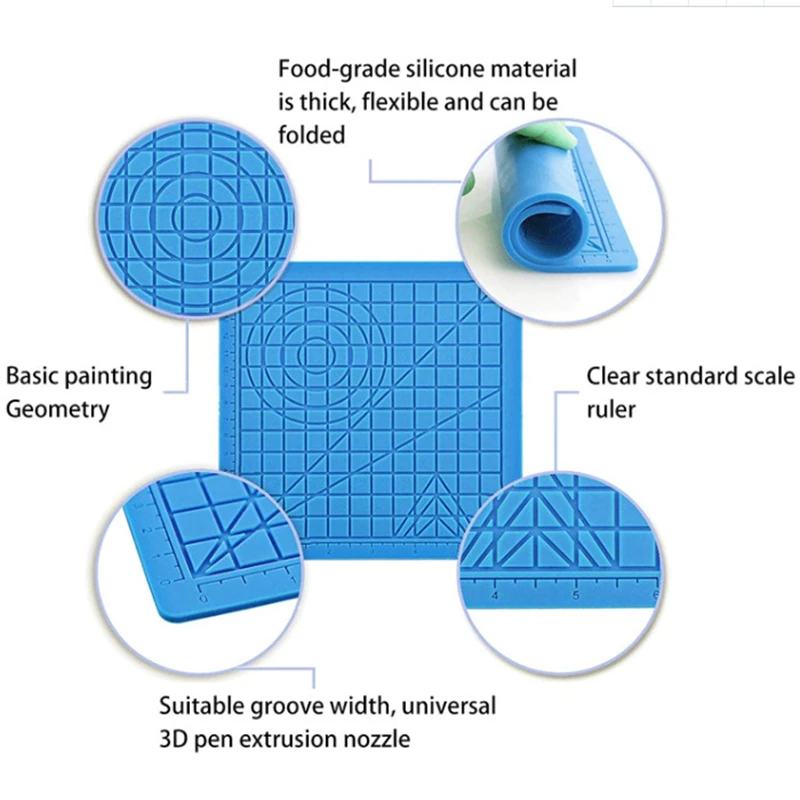 3D печать Ручка Силиконовый дизайн коврик с основным шаблоном, с 2 силиконовыми колпачками для пальцев, большой 3D ручка инструменты для рисования