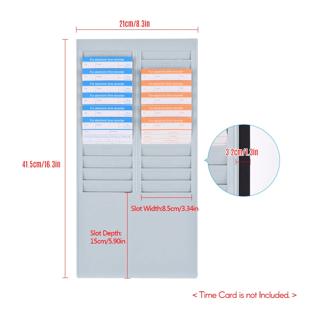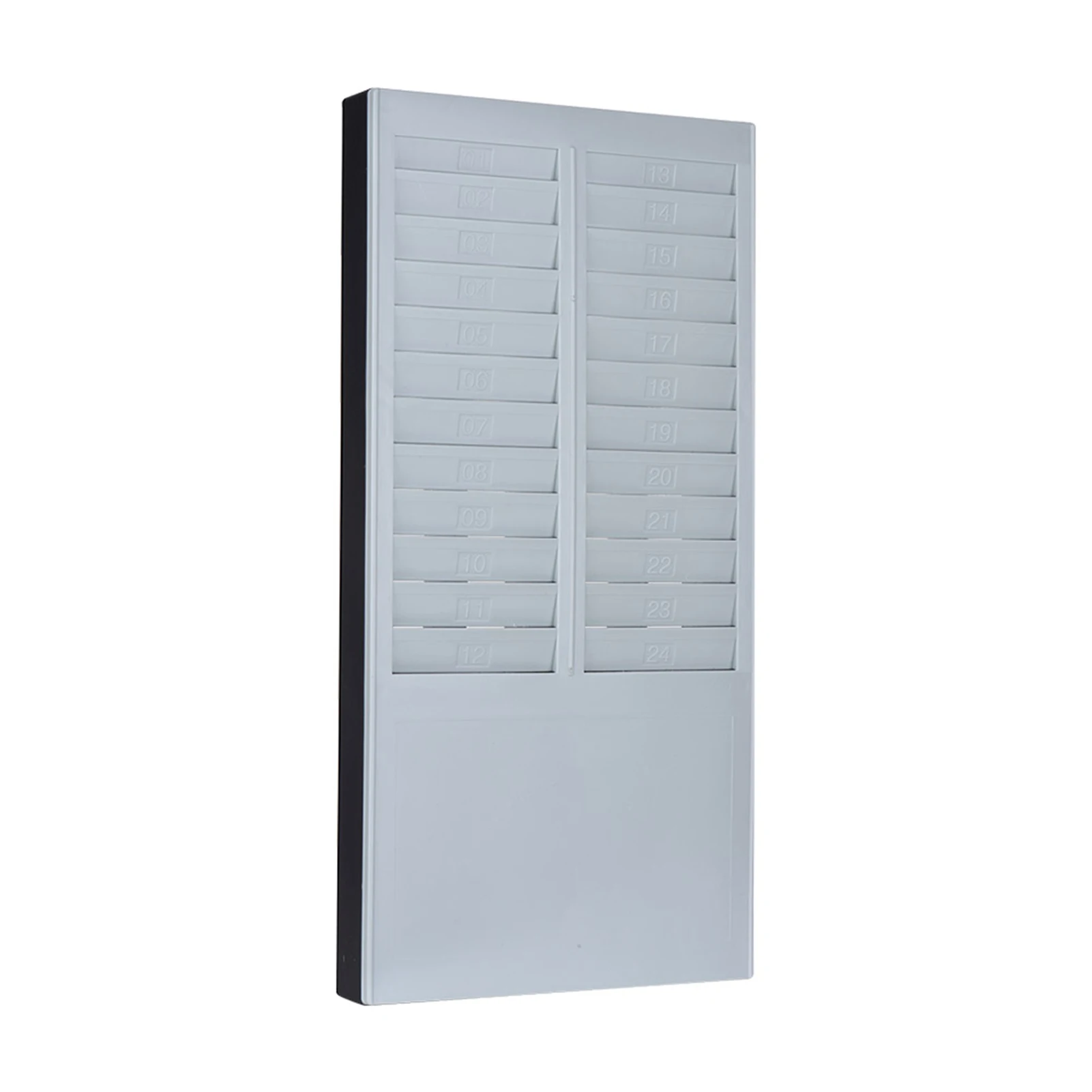 24 кармана для карт времени, 1 слот для 1 карты, может вмещать до 24 карт вашего времени посещаемости, обычно используется в офисе, фабрике, складе и т. д.