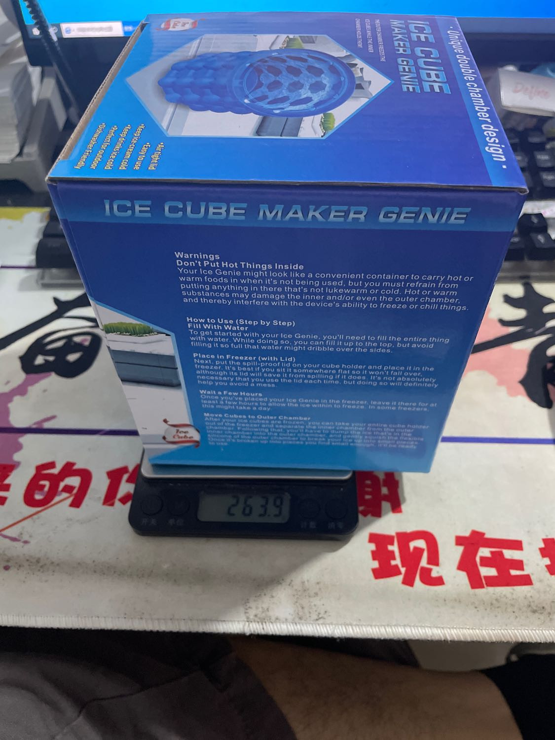 the lid when the water is filled.Third,put the ice bucket horizontally in