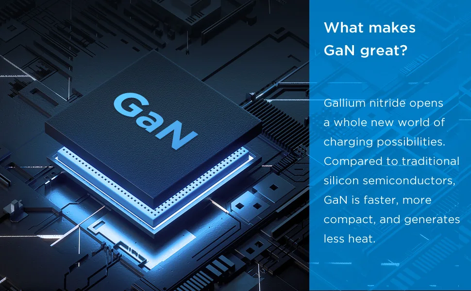 Что делает Ган отличным? Нитрид галлия открывает совершенно новый мир возможностей зарядки. По сравнению с традиционными силиконовыми полупроводниками, GaN быстрее, компактнее и генерирует меньше тепла.