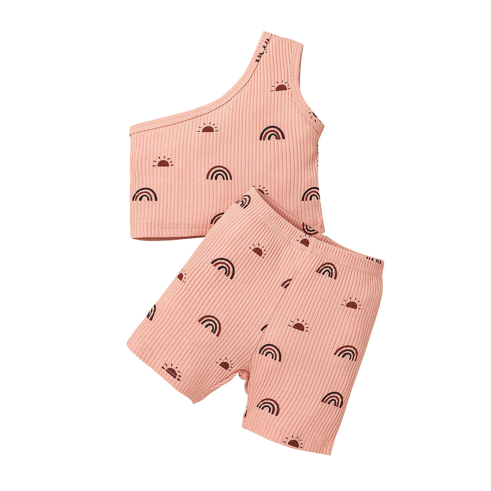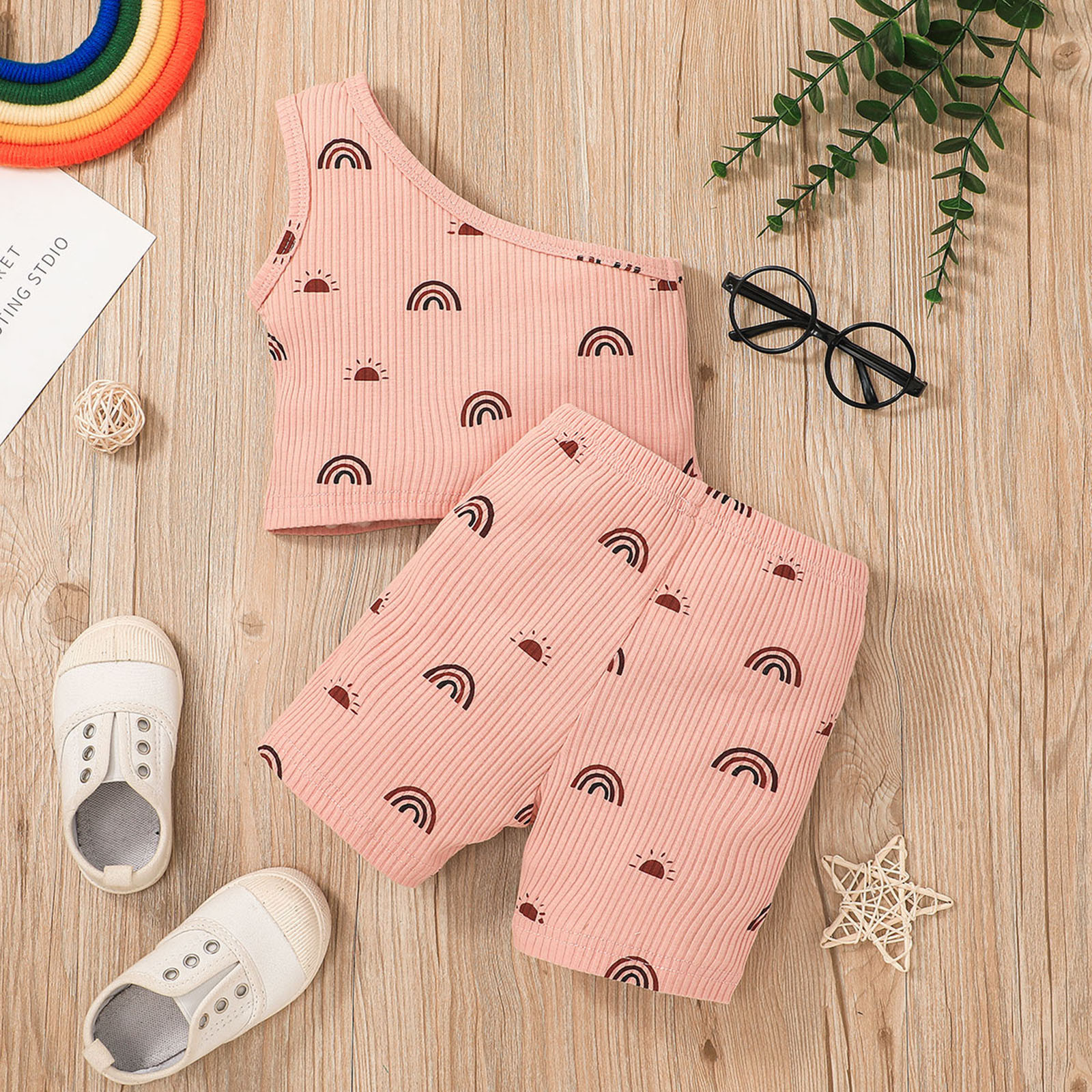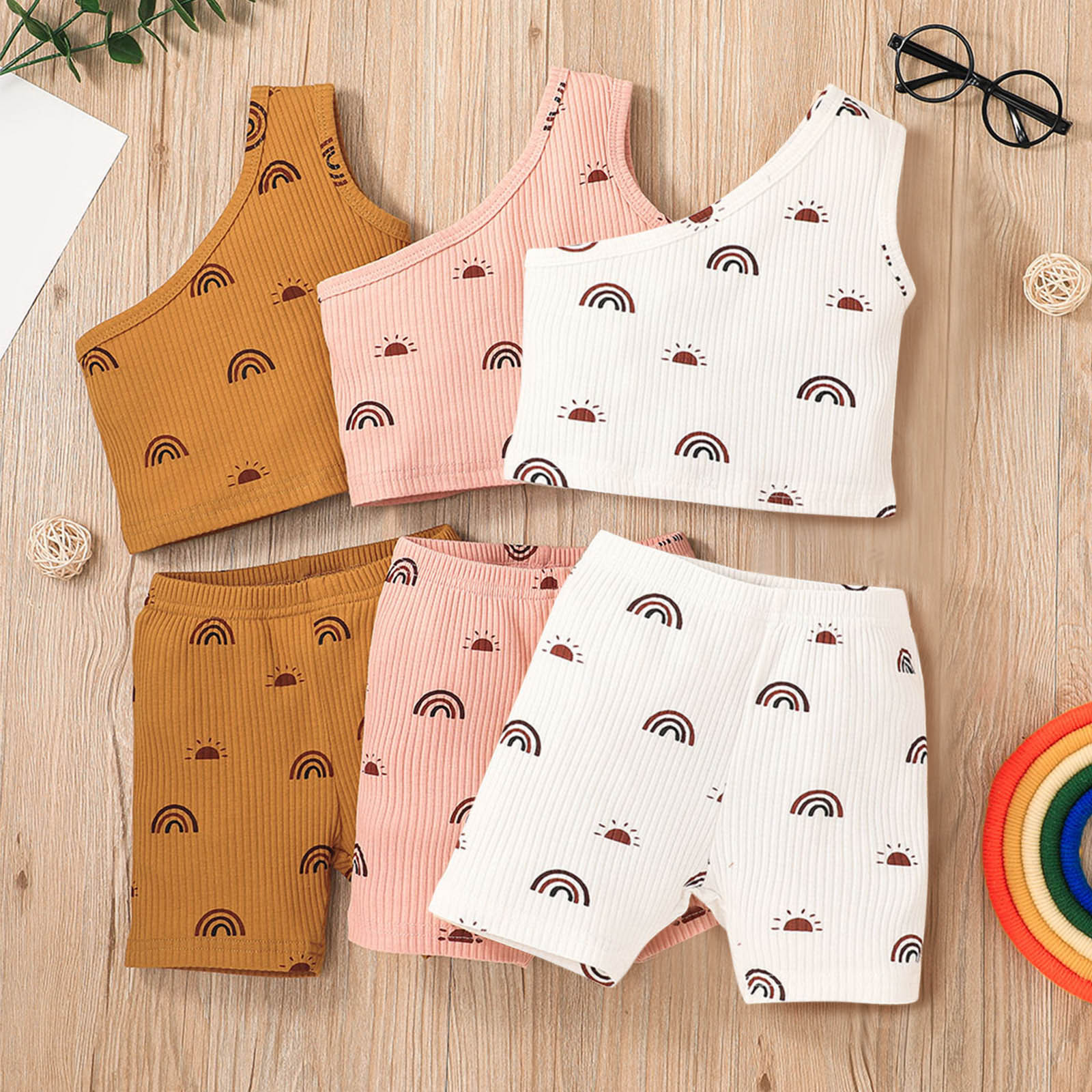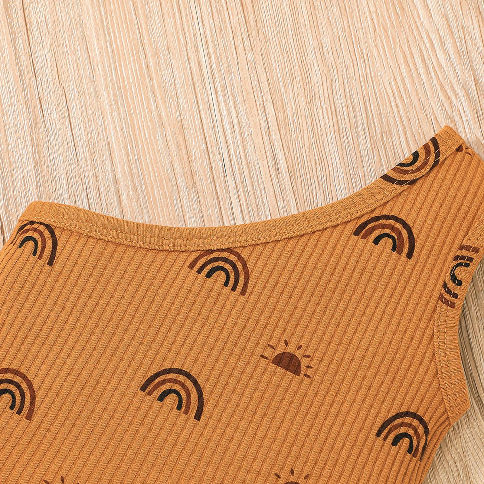 От 1 до 5 лет для маленьких девочек; Майка в рубчик без рукавов с принтом радуги; Топы и шорты