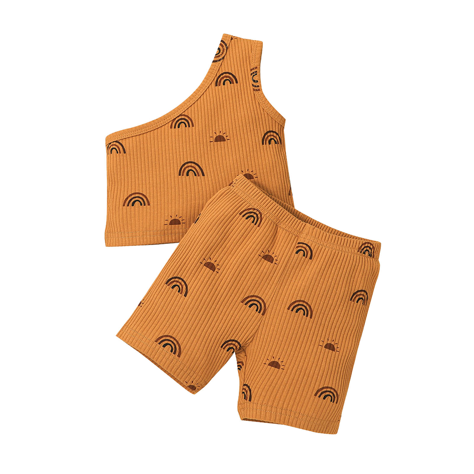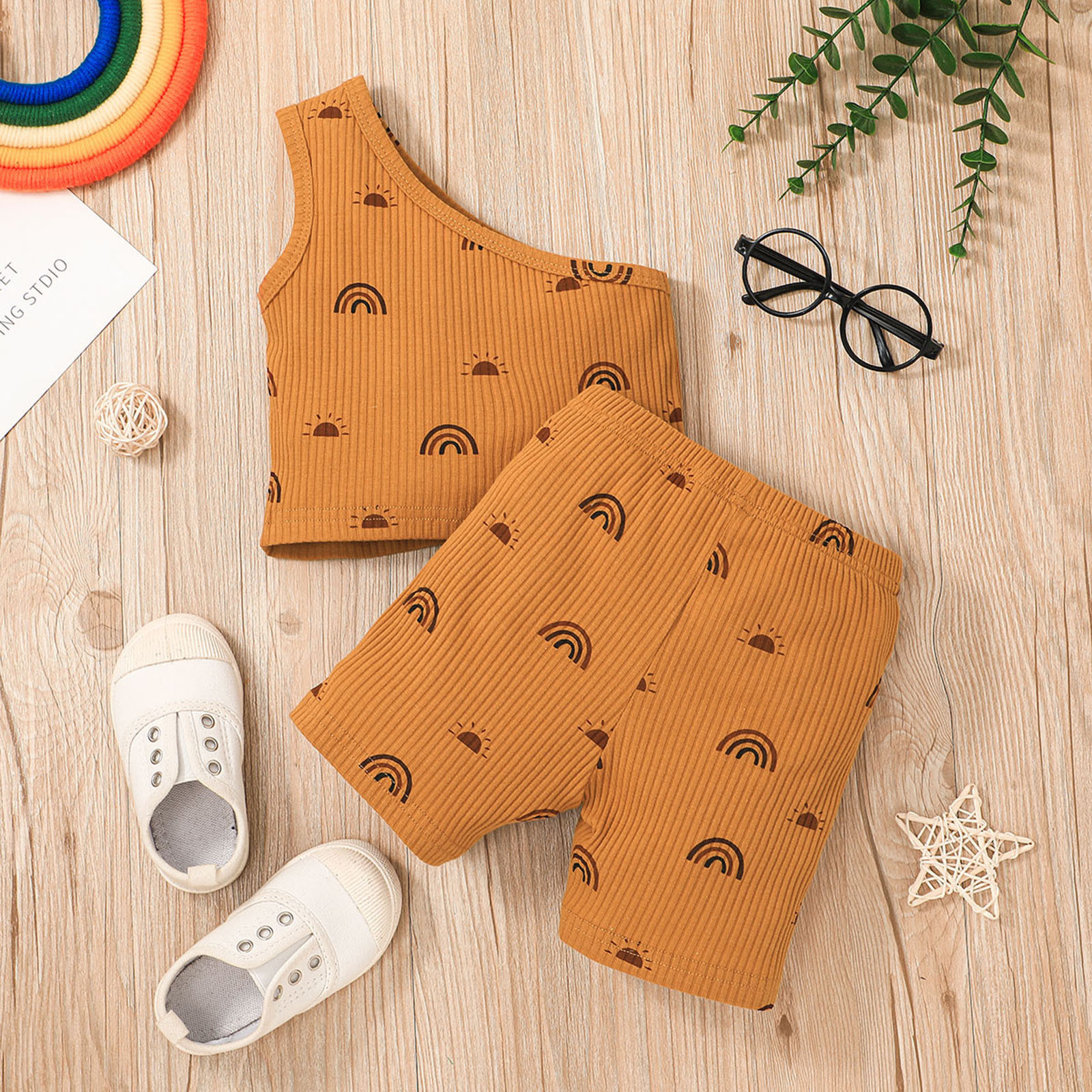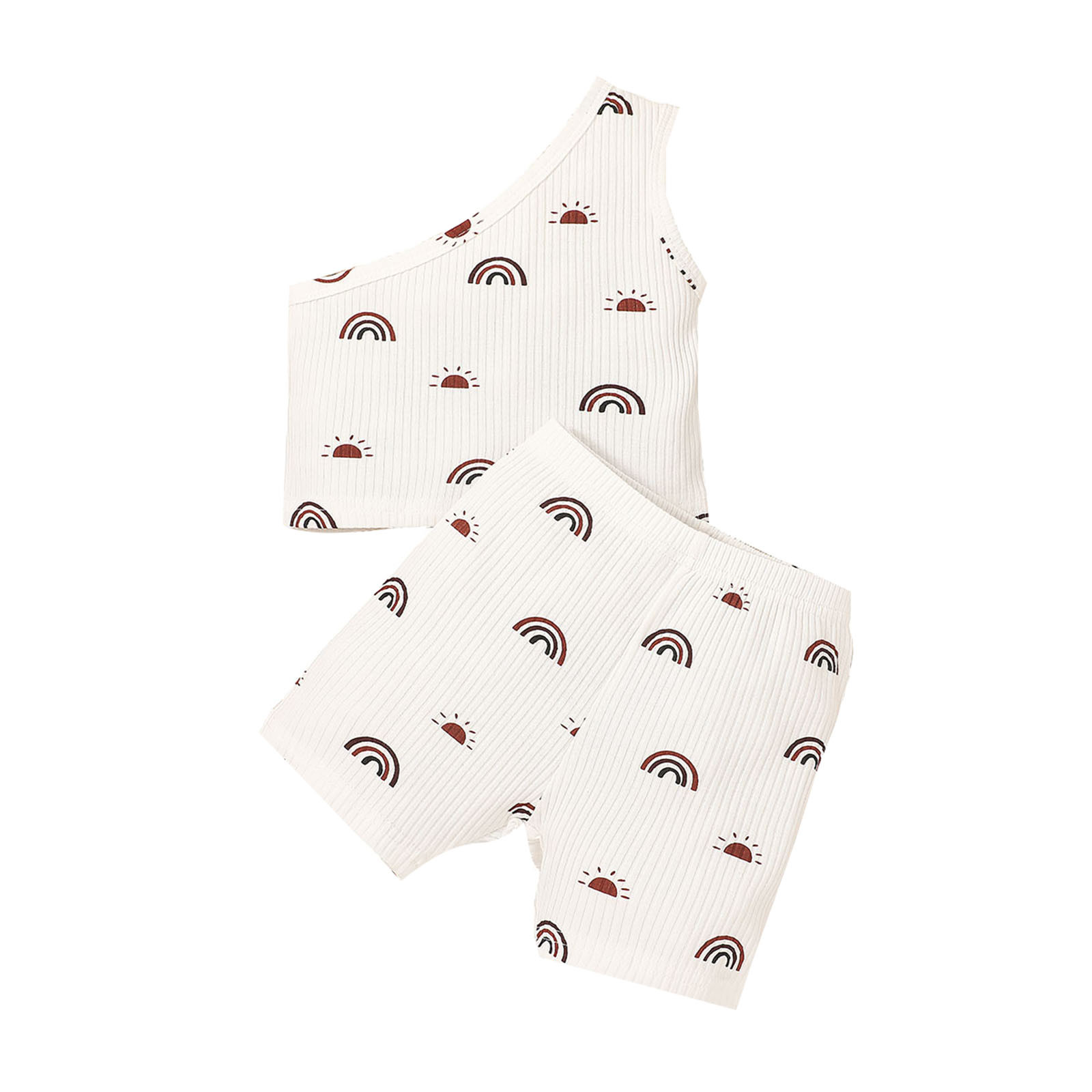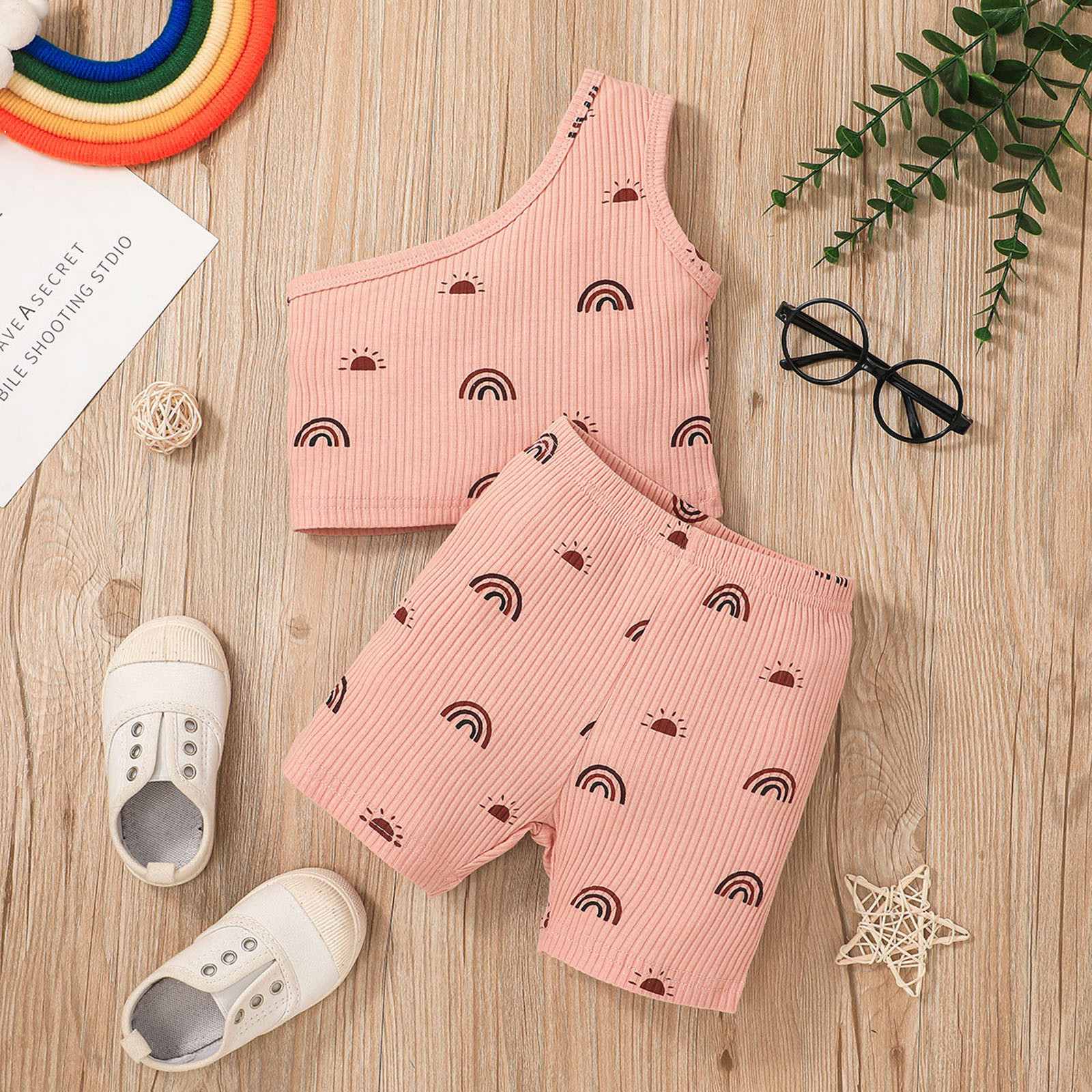 От 1 до 5 лет для маленьких девочек; Майка в рубчик без рукавов с принтом радуги; Топы и шорты