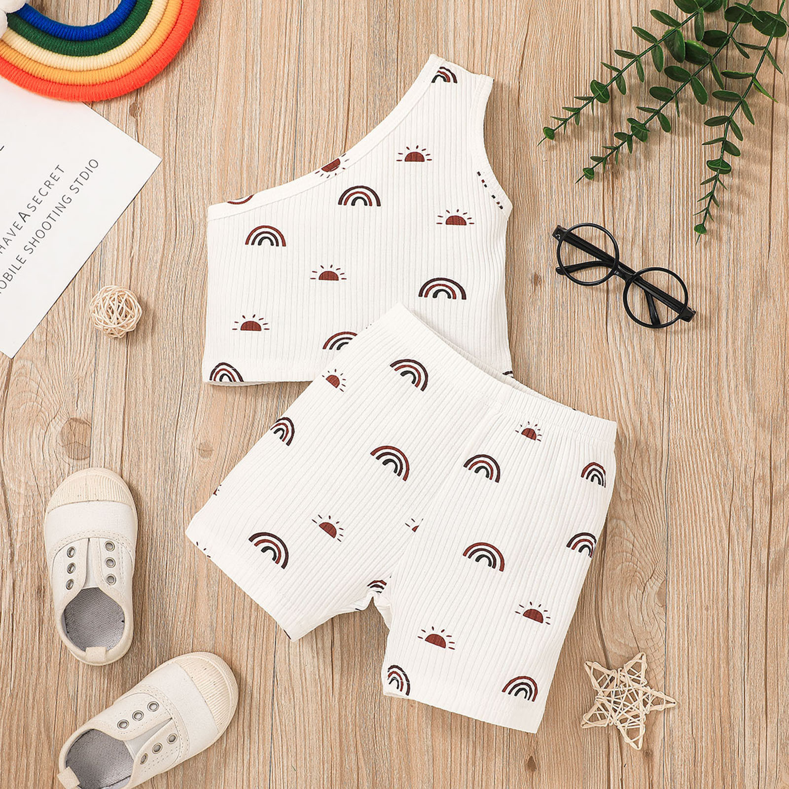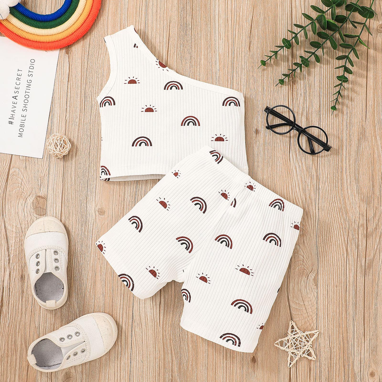 Комфорт для повседневной носки ребенка. Модные топы с радужным принтом + шорты, ваш малыш получит много