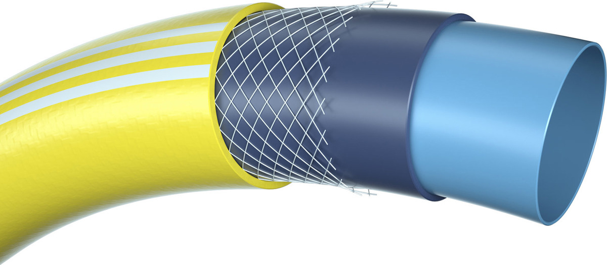 The first garden hose with special protective coating on the inner surface of the hose produced without the use of PVC.