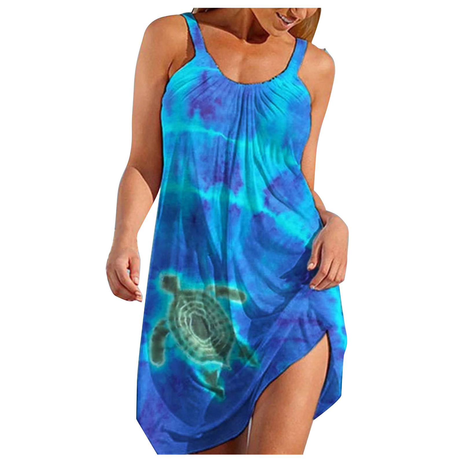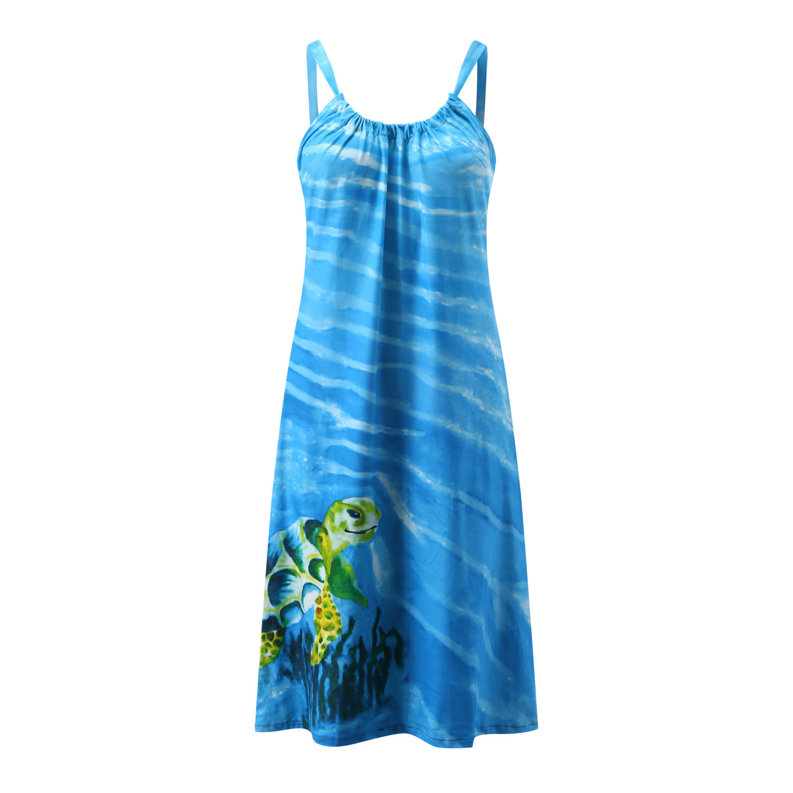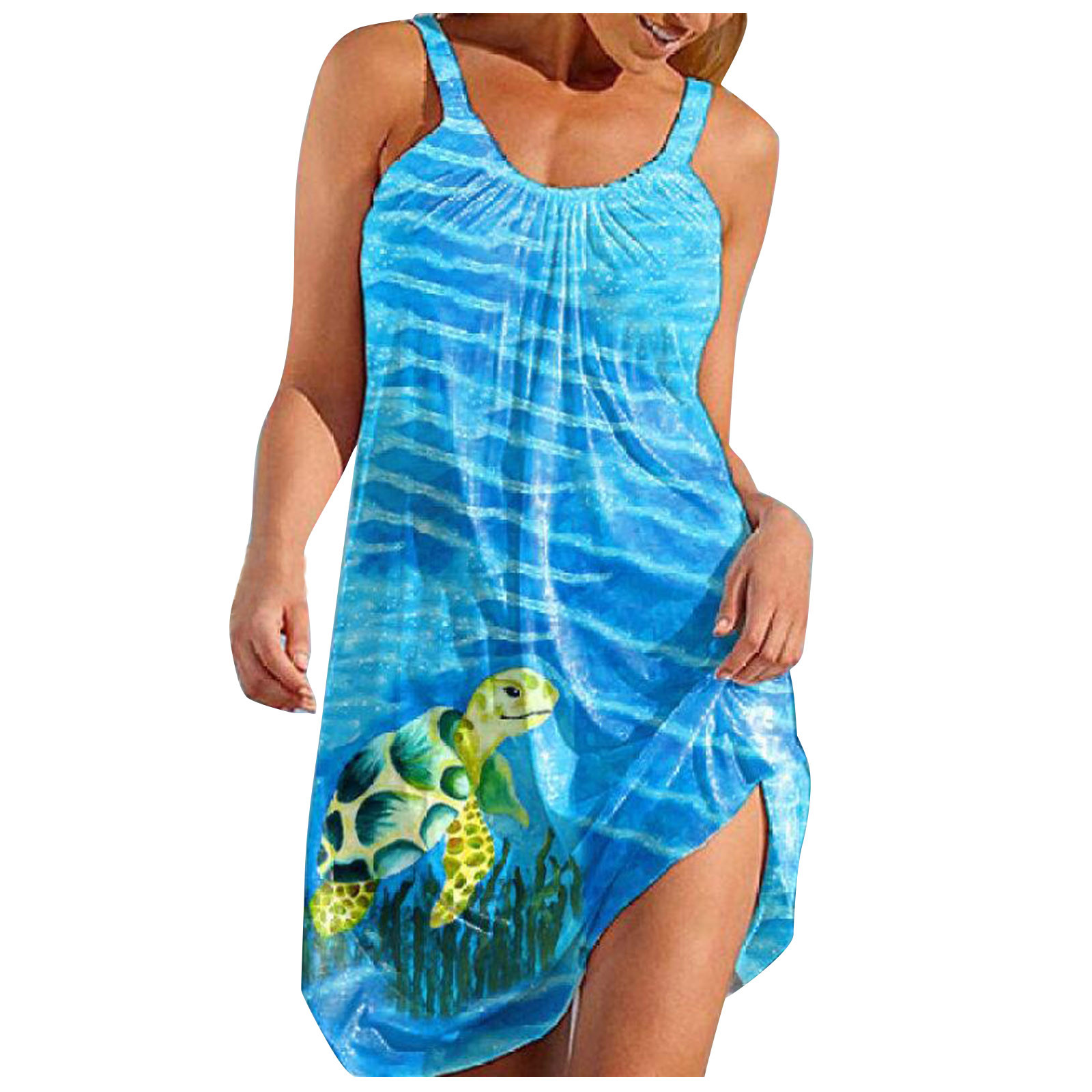 Женское пляжное платье с принтом морских черепах, повседневное короткое платье без рукавов на бретелях