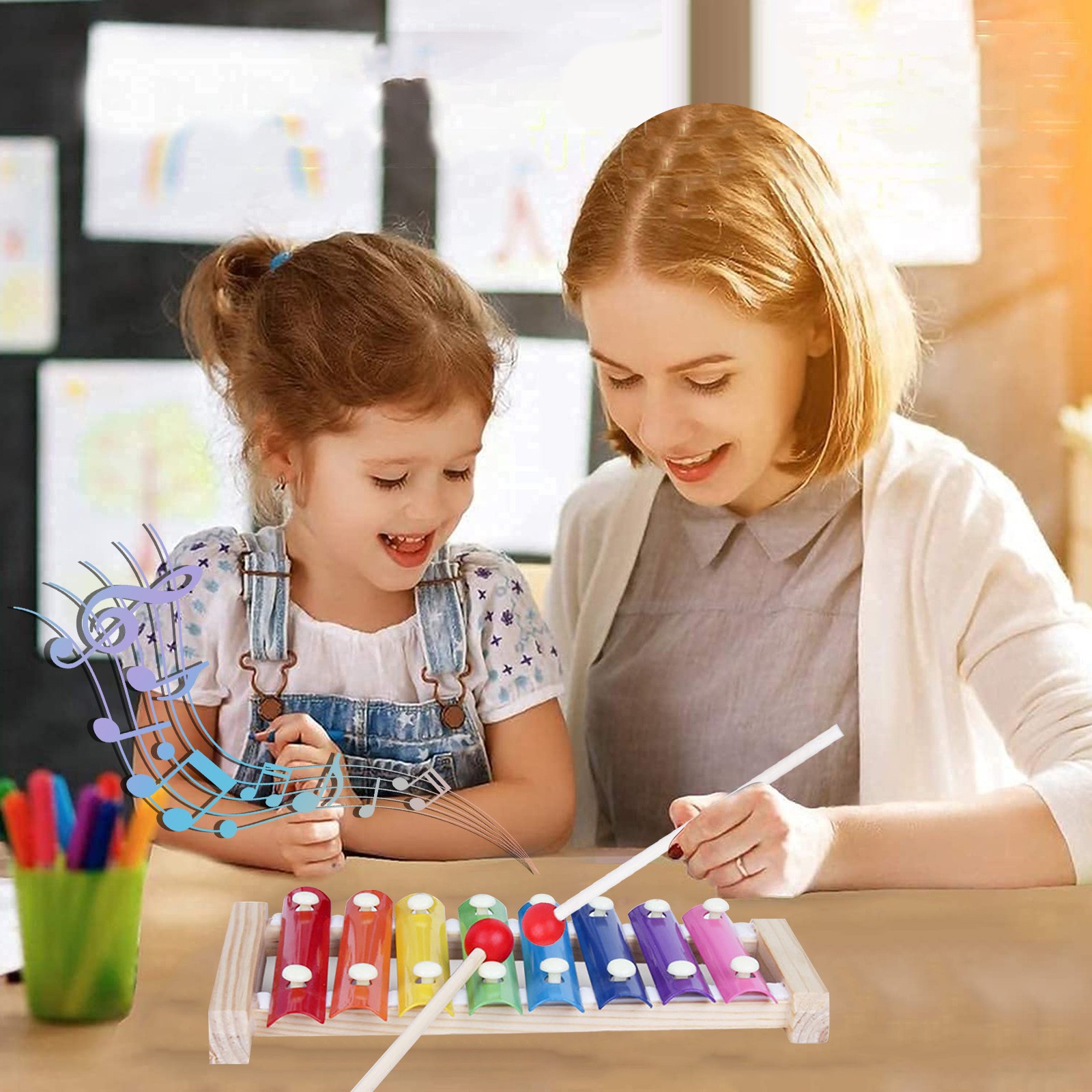 INCLUDES EVERYTHING YOUR CHILD NEEDS TO GET STARTED: Xylophone (Glockenspiel), Castanets, Tambourine, Maracas, Shaker Eggs, Claves, Sleigh Bells and Wrist Bells in a portable storage bag for maximum convenience.