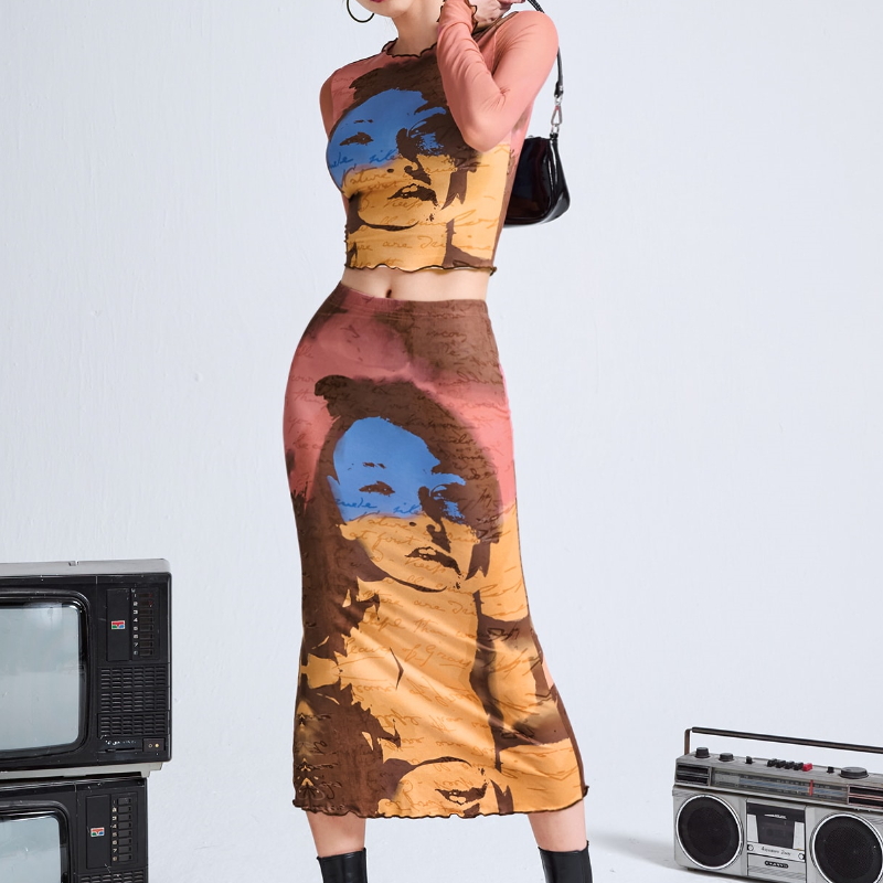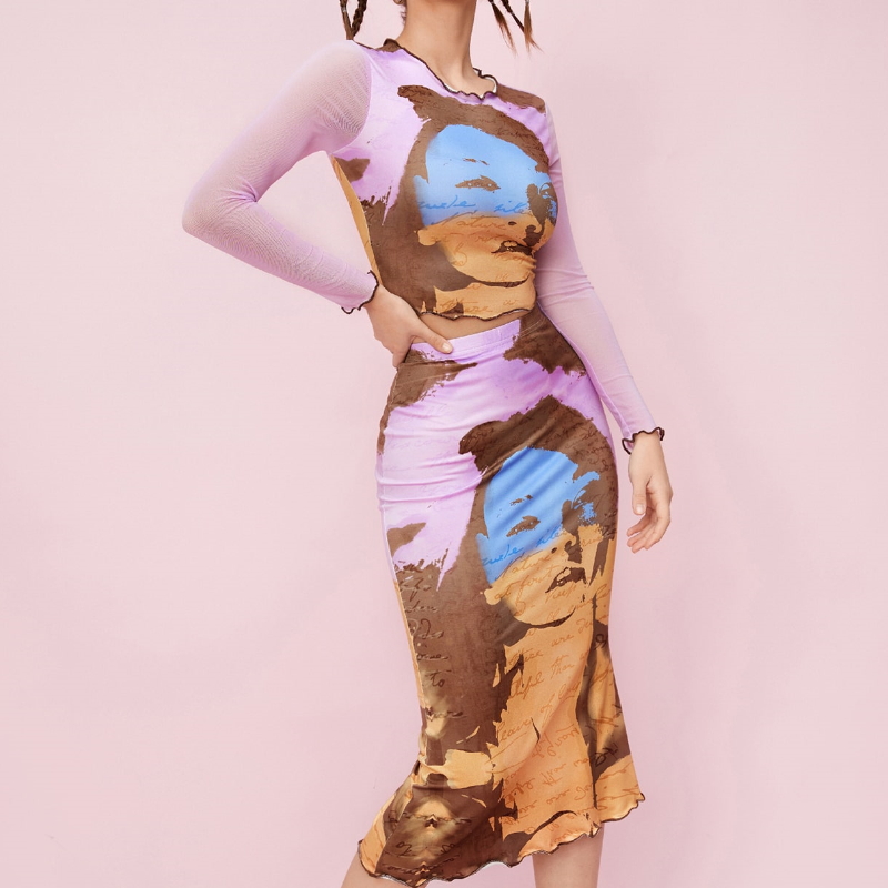 Женская плиссированная прямая юбка миаке весна-лето 2022 с принтом |