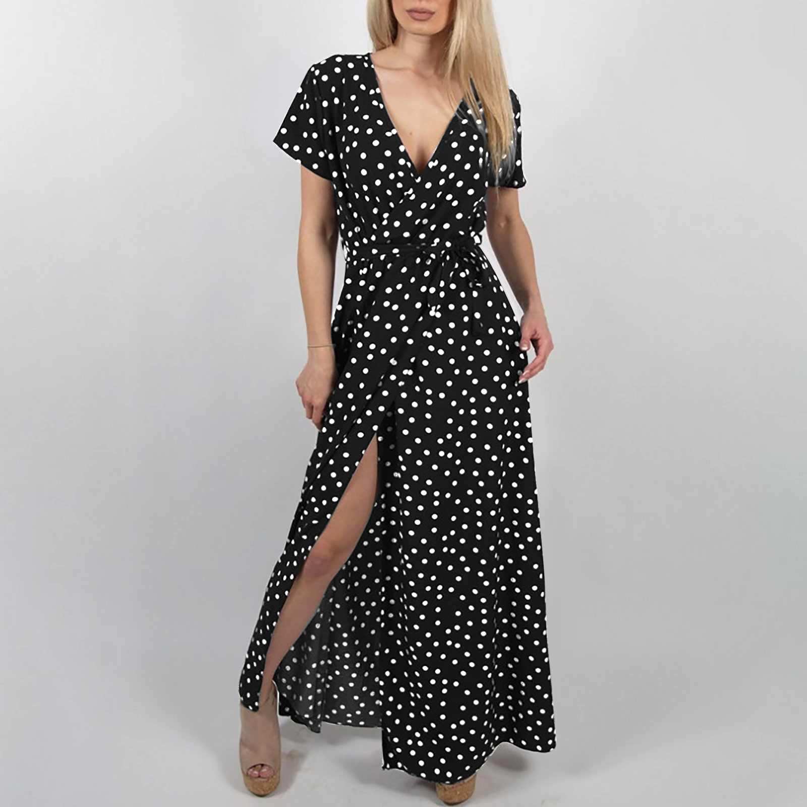 4. Особенности: Повседневный стиль, показывающий ваше уникальное очарование и жизненную силу, придает ощущение элегантности и стиля. Повседневное модное платье с принтом крест-накрест и v-образным вырезом, с короткими рукавами, пикантная боковая молния, на талии, со шнуровкой, длинное платье на ощупь, мягкое и удобное, и вам понравится, когда вы его получите;