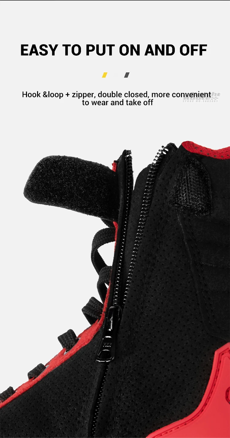 Используется дизайн боковой молнии, делает надевание и снятие быстро и легко, больше не нужно часто завязывать шнурки, надежно и удобно.