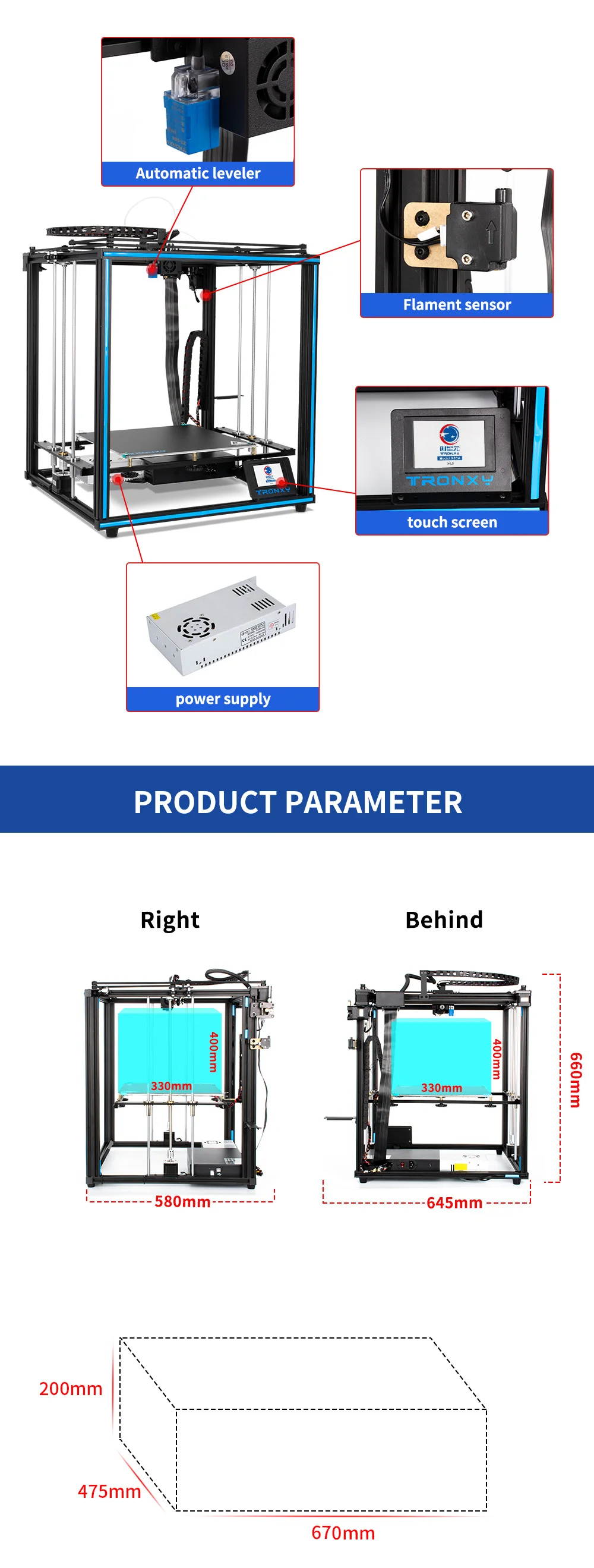 Максимальный размер печати X5SA: 330*330*400 мм