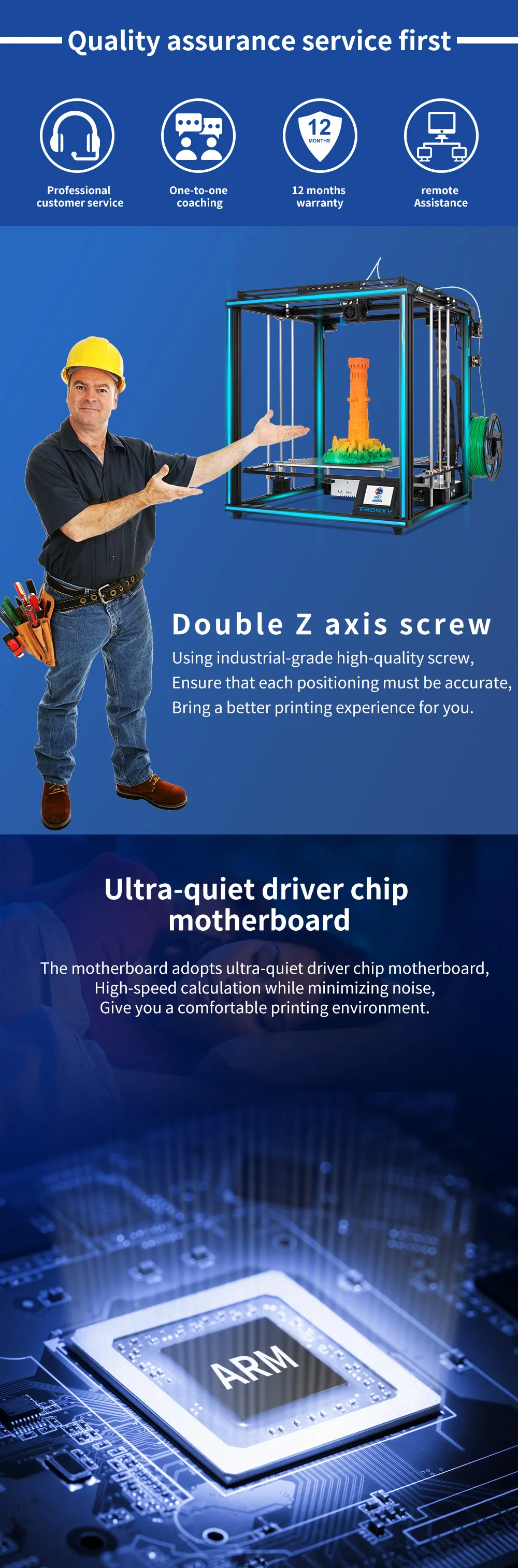 Сложный процесс сборки был завершен до выхода из фабрики, но Принтер должен быть просто собран, чтобы объединить собранные детали.