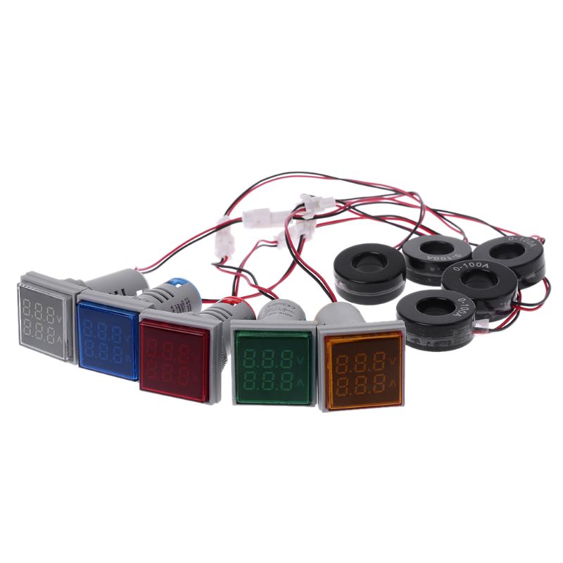 Квадратный светодиодный цифровой вольтметр Амперметр 22 мм сигнальные огни Вольт Напряжение Ампер Измеритель Тока Тестер измерения переменного тока 60-500 В 0-100A
