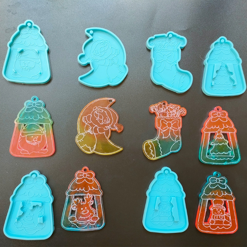 69HB Рождественская елка/носки/цепочка для ключей с Санта-Клаусом силиконовая форма с отверстием брелок кулон ручной работы подарок на Рождество