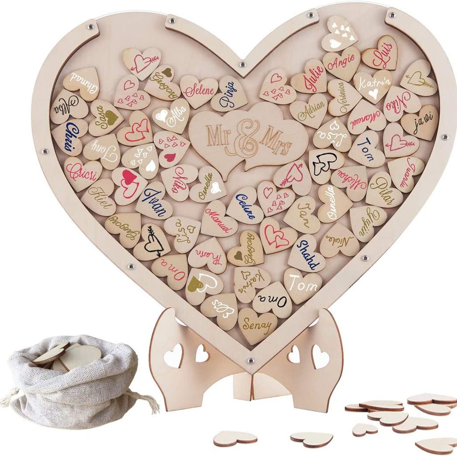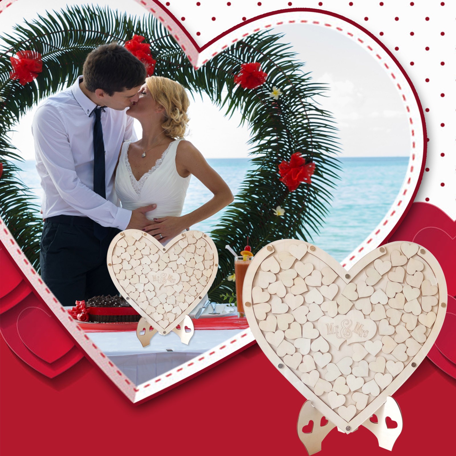 - 4. Широкий спектр применения: Наша деревянная потолочная рамка в форме сердца для гостей на свадьбе очень красивая и простая, которая подходит для большинства украшений и тем, таких как свадьба, свадебные подарки, крещение ребенка, крещение невесты, годовщина, выпускной вечер, вечеринка и свадебные украшения.