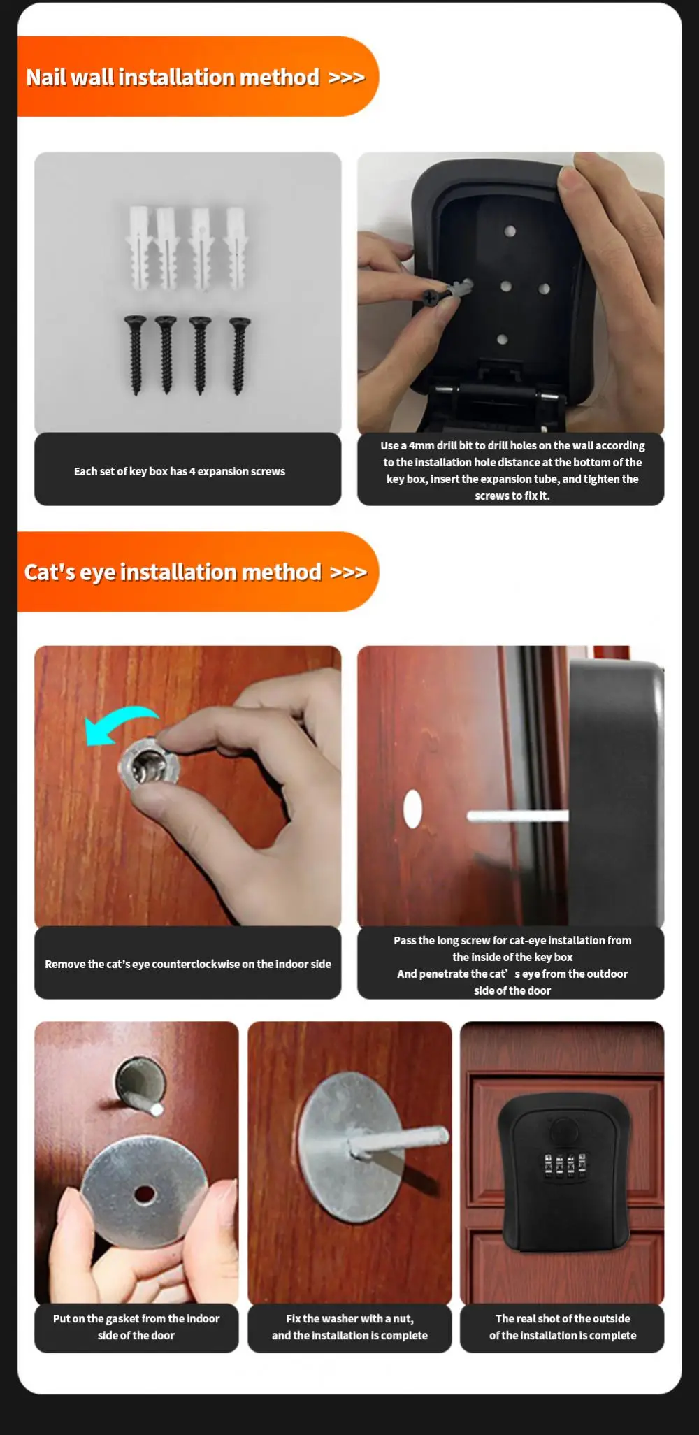 5. Широкое применение: коробка для ключей может использоваться во многих областях. Подходит для использования на открытом воздухе. Его можно зафиксировать на стене для аварийного входа, дома отдыха и т. д.