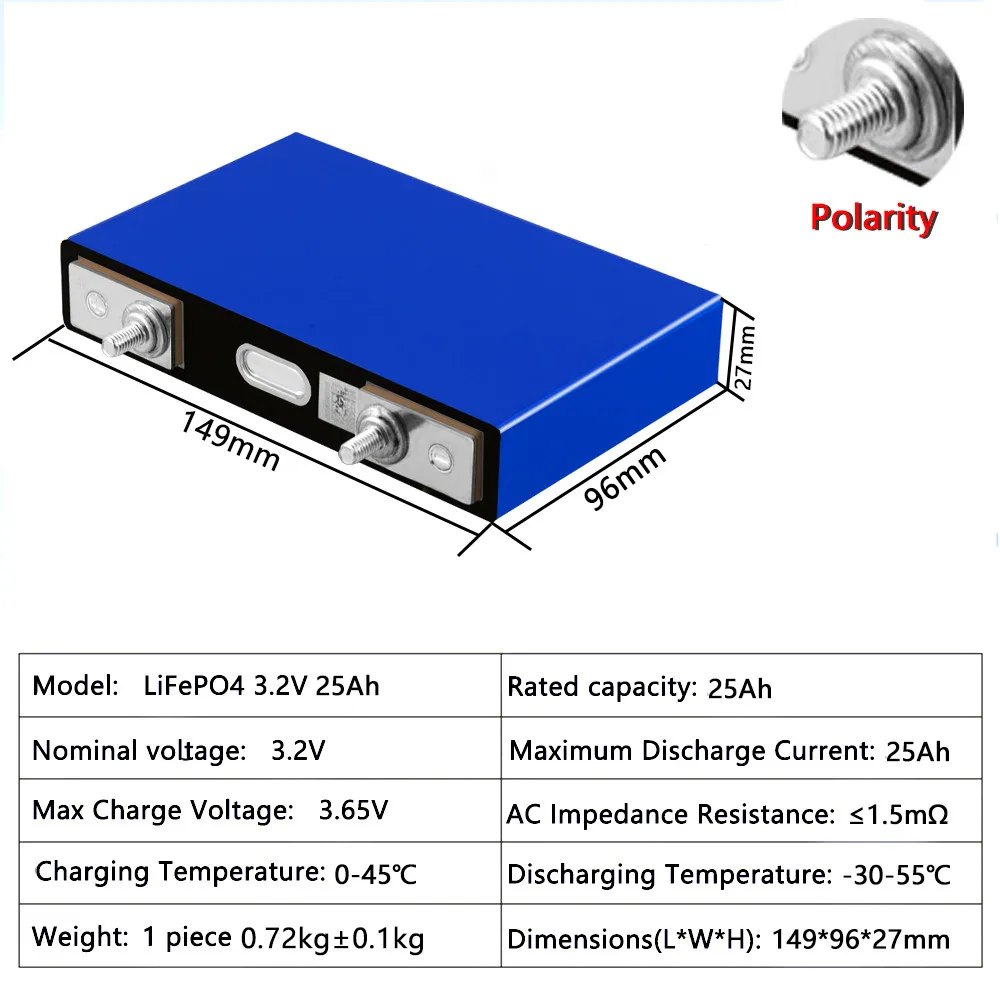 Рекомендуемый Постоянный ток: 12.5A (0.5C)
