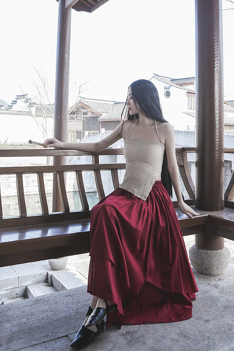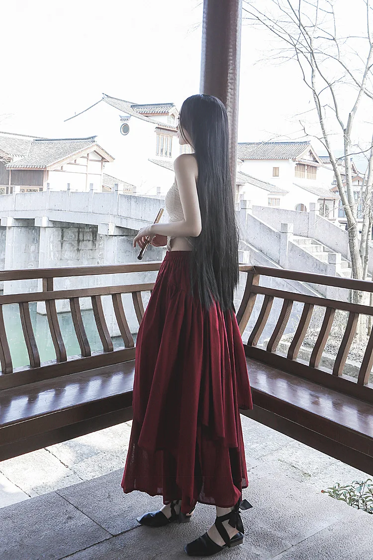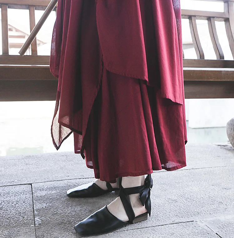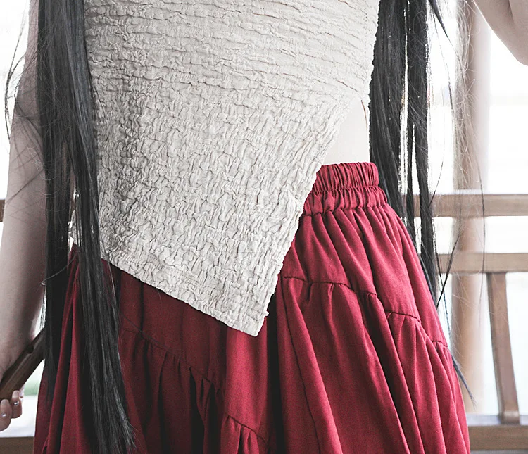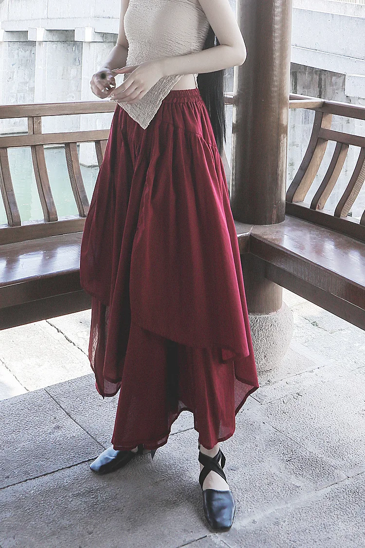 Женская Асимметричная юбка UMI MAO Yamamoto темно-красная с разрезом весна-лето 2022 |
