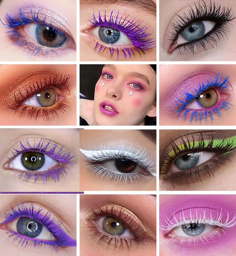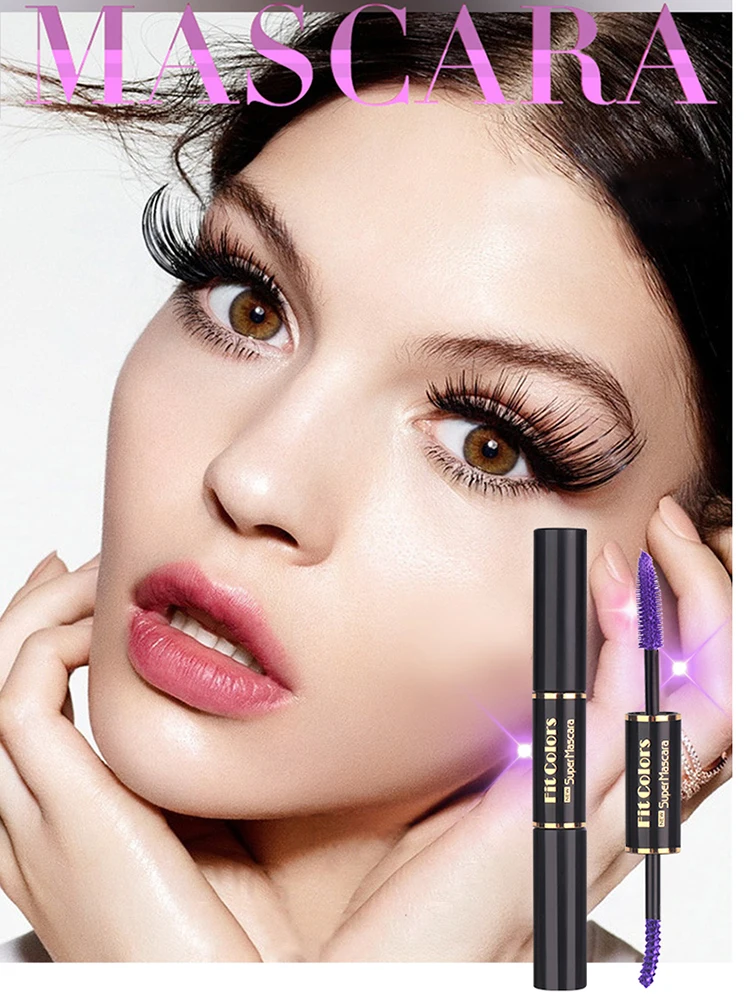 ELECOOL двойная головка 6 цветов тушь для ресниц водоСТОЙКАЯ быстросохнущая наращивание ресниц кудри макияж синий фиолетовый черный белый чернильная тушь для ресниц