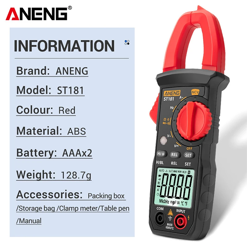 -Многофункциональное измерение: напряжение переменного/постоянного тока, ток переменного тока, сопротивление, емкость, частота, тест NCV, диод, испытание ВКЛ-ВЫКЛ.