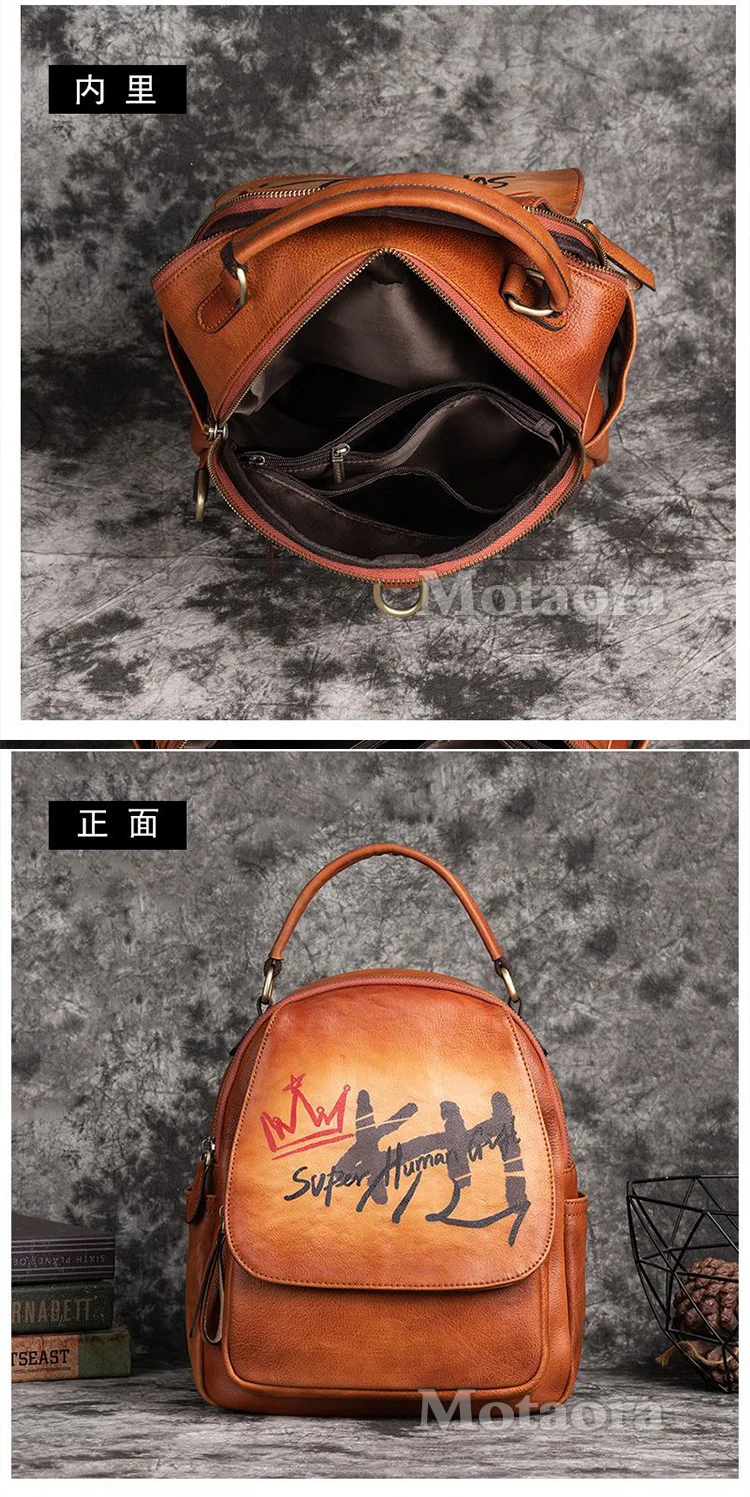 MOTAORA, женский рюкзак из натуральной кожи, для дам, винтажная сумка на плечо, кожаная ретро сумка, женские дорожные сумки для телефона, книги, Ipad