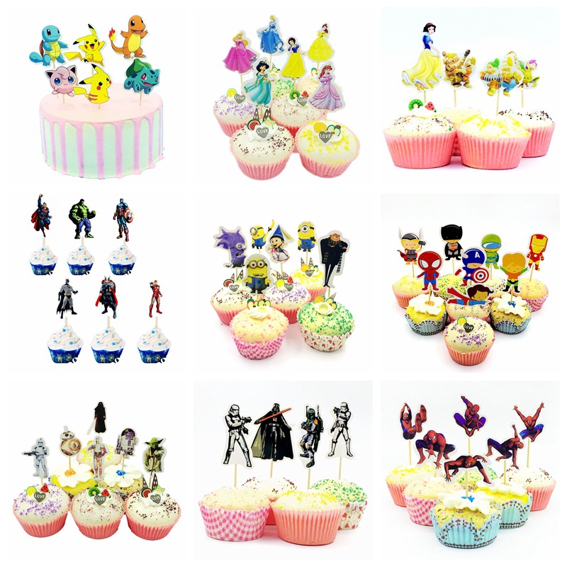 24 шт Микки Маус замороженный Человек-паук кекс топперы выбрать детей день рождения партии поставки свадебный торт флаг украшения девушка подарок